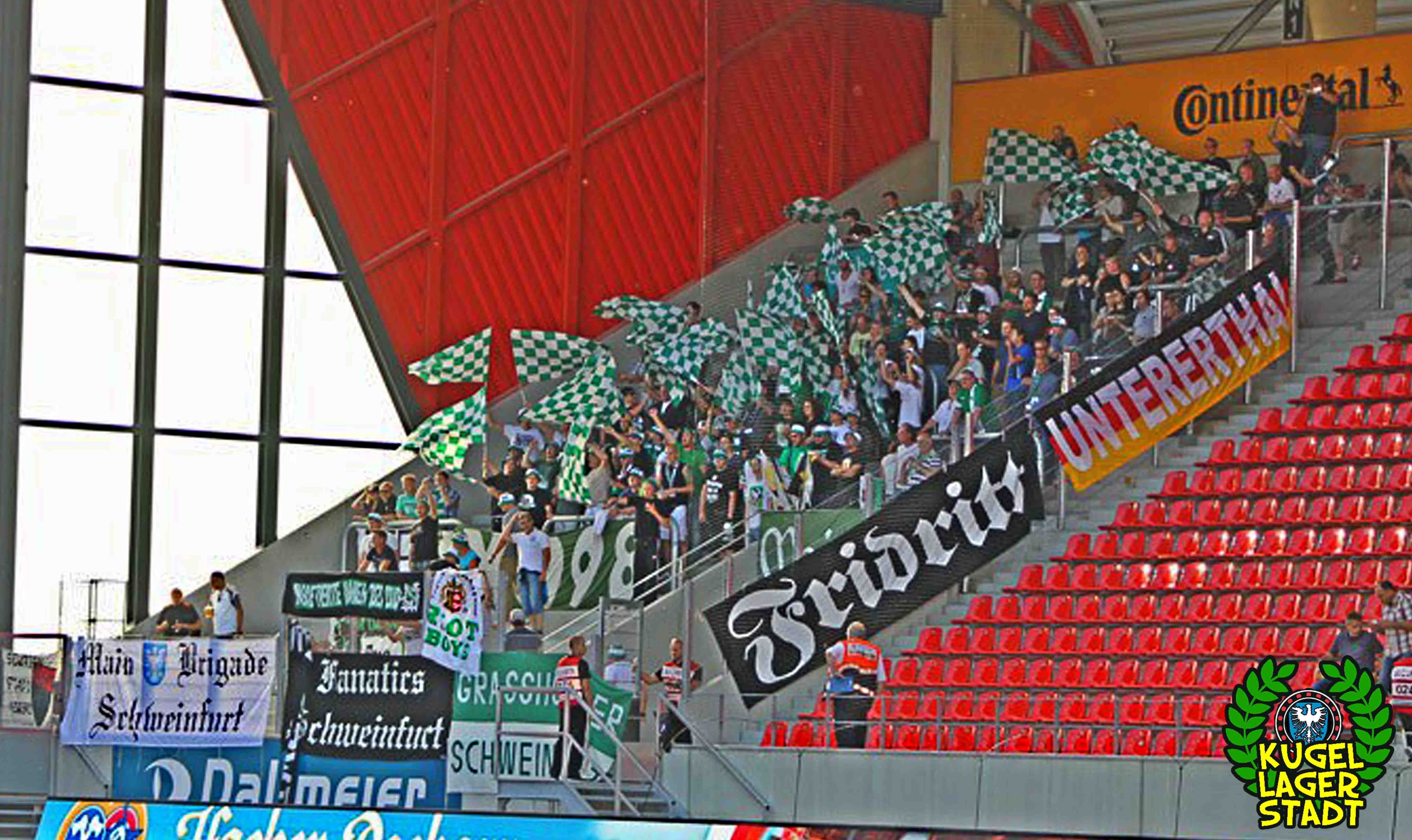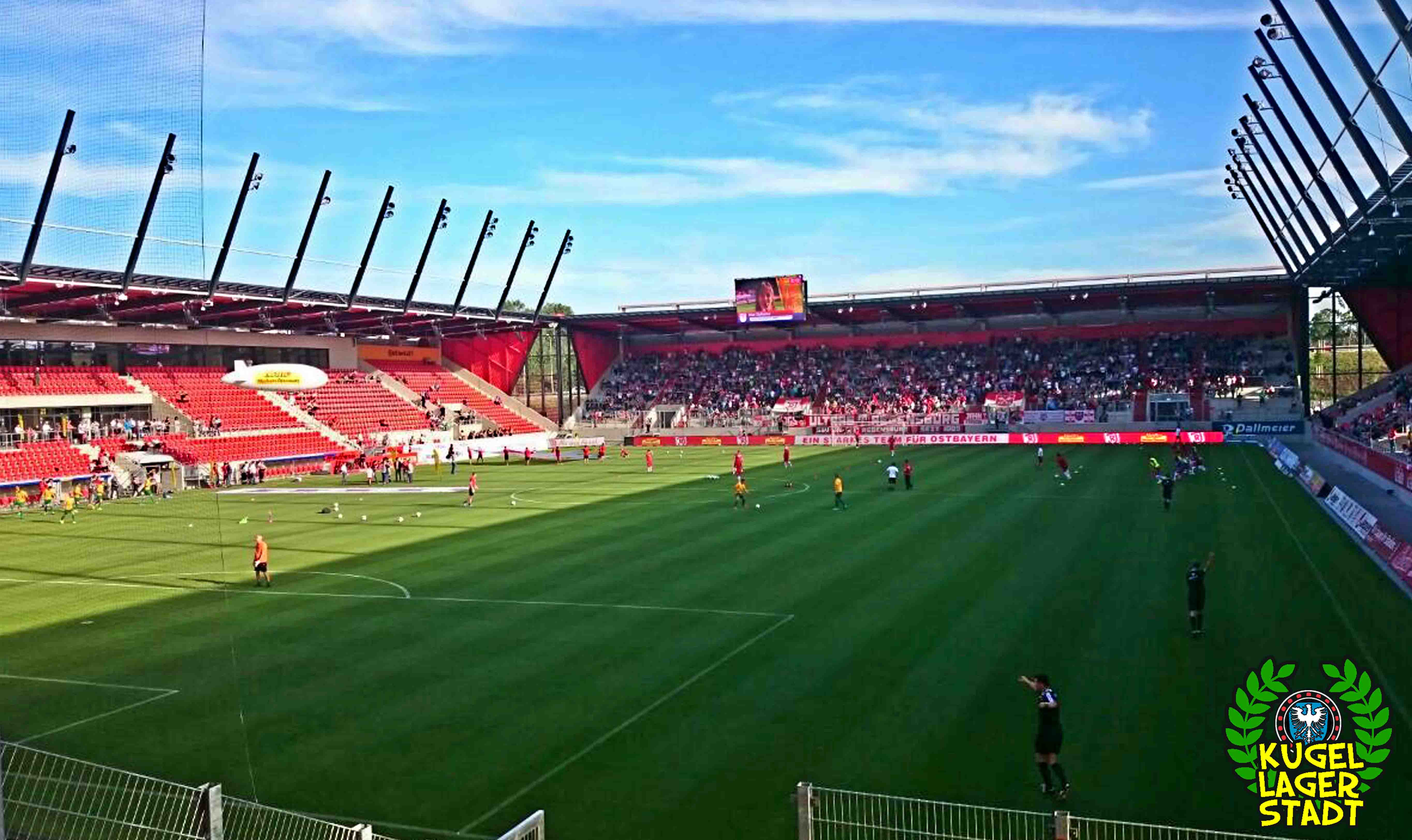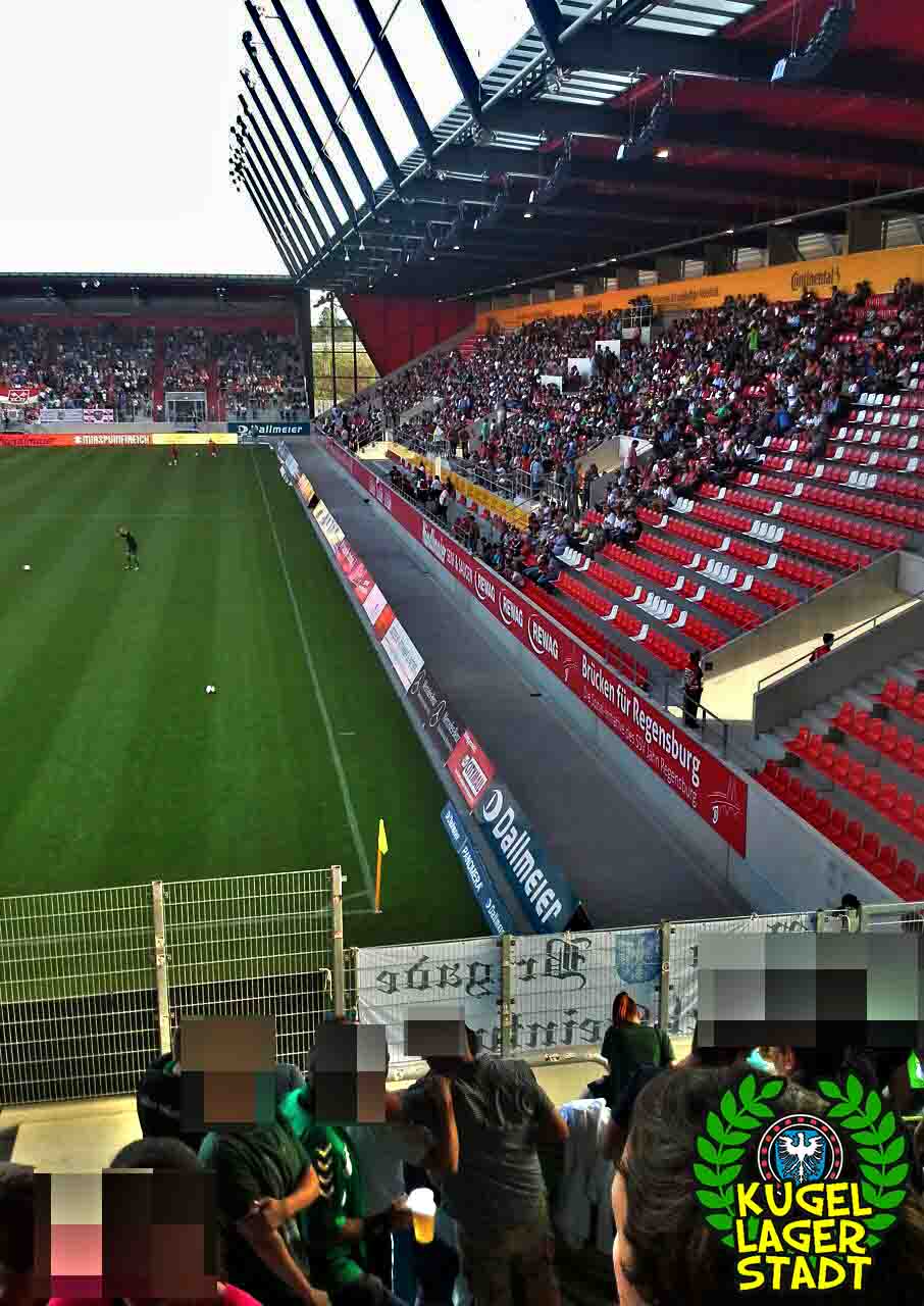 Continental-Arena Regensburg. Fertiggestellt: 2015. Kostenpunkt: rund 53 Millionen Euro. Kapazität: 15.224 Zuschauer. All diese Fakten klingen nach Profifussball, nach dritter oder sogar nach zweiter Liga. In der Realität trägt jedoch der (neue) Viertligist SSV Jahn Regensburg seine Heimspiele in der aktuellen Saison der Regionalliga Bayern in dieser Arena aus. Mit (Stand: 04.11.15) einem Schnitt von 8.387 Zuschauern pro Spiel spielt der Jahn publikumstechnisch schon in dieser Saison in einer anderen Liga. Sportlich, so ist zumindest zu vermuten, höchstwahrscheinlich in der nächsten Saison. Nach dem Abstieg gilt Regensburg, wo nach zwei Jahren in der dritten und sogar einem Jahr in der zweiten Liga weiterhin auf Profiniveau gearbeitet wird, als der haushohe Favorit auf die „bayerische Meisterschaft“. Alles andere als der sofortige Wiederaufstieg wäre eine herbe Enttäuschung für die Truppe aus der Oberpfalz. Erwartungsgemäß konnten also die ersten drei Saisonspiele allesamt gewonnen werden. Die Schweinfurter Schnüdel wiederum reisten als Tabellensiebter an und mit fünf Gegentoren im Gepäck als Tabellendreizehnter wieder ab. Zum Spiel selbst: Die Regensburger bestimmten, wie erwartet, von Beginn an das Spiel und drängten die Schnüdel in die Defensive. Nach sieben Minuten schlug es im Schweinfurter Kasten zum ersten Mal ein. Nach einer kleineren Chance von Tom Jäckel legte Regensburg noch vor der Pause das 2:0 nach. In der zweiten Hälfte konnte sich der FC aus der Kugellagerstadt zwar die ein oder andere Chance erspielen, musste aber dennoch die Gegentore drei bis fünf schlucken und so die Heimreise ohne etwas Zählbares antreten. Immerhin sorgten die rund 150 mitgereisten Fans aus der Stadt am Main, für eine tolle Stimmung im Gästefanblock, anlässlich des 110-jährigen Bestehens des FC 05.