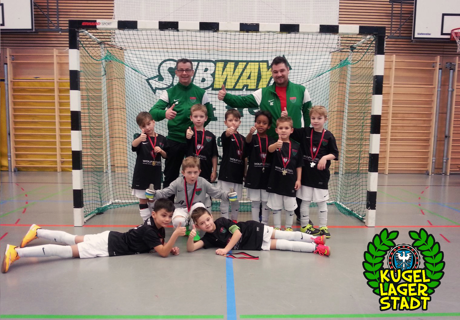 Mit drei Siegen aus drei Spielen bei einem Torverhältnis von 4:1 stand für unsere Mannschaft nun mit dem SC Hesselbach der Halbfinalgegner fest. In Gruppe A gestartet, zog Hesselbach mit einer Niederlage gegen die Freien Turner, einem Unentschieden gegen den TSV Bergrheinfeld und einem Sieg gegen den TV Haßfurt als Gruppenzweiter ins Halbfinale ein. Unsere Jungs gingen auch in dieser Partie von Beginn an hochkonzentriert zu Werke und zeigten eine reife Spielanlage, welche nach drei Minuten, per Schuss ins lange Eck, zum 1:0 durch Marlon Freiberg führen sollte. Nur zwei Minuten später gelang dem nächsten FC 05 Spieler ein Doppelpack: Nach feinem Spielzug erhöhte Marlon Freiberg in der 5. Spielminute auf 2:0. Die Gäste kamen nicht mehr zwingend vor den Kasten des FC 05 und so war nach 10 Minuten der Finaleinzug perfekt. Im Endspiel wartete mit dem TSV aus Schonungen ein Gegner, der schon in der Vorrunde beim 2:1 aus Schnüdelsicht ein Gegner auf Augenhöhe war und zudem für das einzige Turniergegentor des FC 05 sorgte. Spannung war daher in dieser Finalpartie garantiert. Höchstmotiviert starteten unsere Jungs in das Endspiel und wussten wiederholt mit einem sicheren Passspiel zu überzeugen. In der 2. Spielminute konnte, wieder einmal nach starkem Eckball, das 1:0 gefeiert werden. Torschütze des Finaltreffers war Bastian Höhn. Nach weiteren guten Möglichkeiten bejubelte unsere Mannschaft, gemeinsam mit den beiden Trainern Daniel Engelbrecht und Jürgen Härtel, nach Abpfiff den hochverdienten Turniersieg. Nach dieser insgesamt geschlossen starken Mannschaftsleistung, in der auch jeder für den anderen gelaufen ist und gekämpft hat, lassen sich die nächsten Hallenturniere, rund um den Hallen-Schnüdel-Cup 2016 am 13. Februar, mit ordentlich Selbstvertrauen angehen.