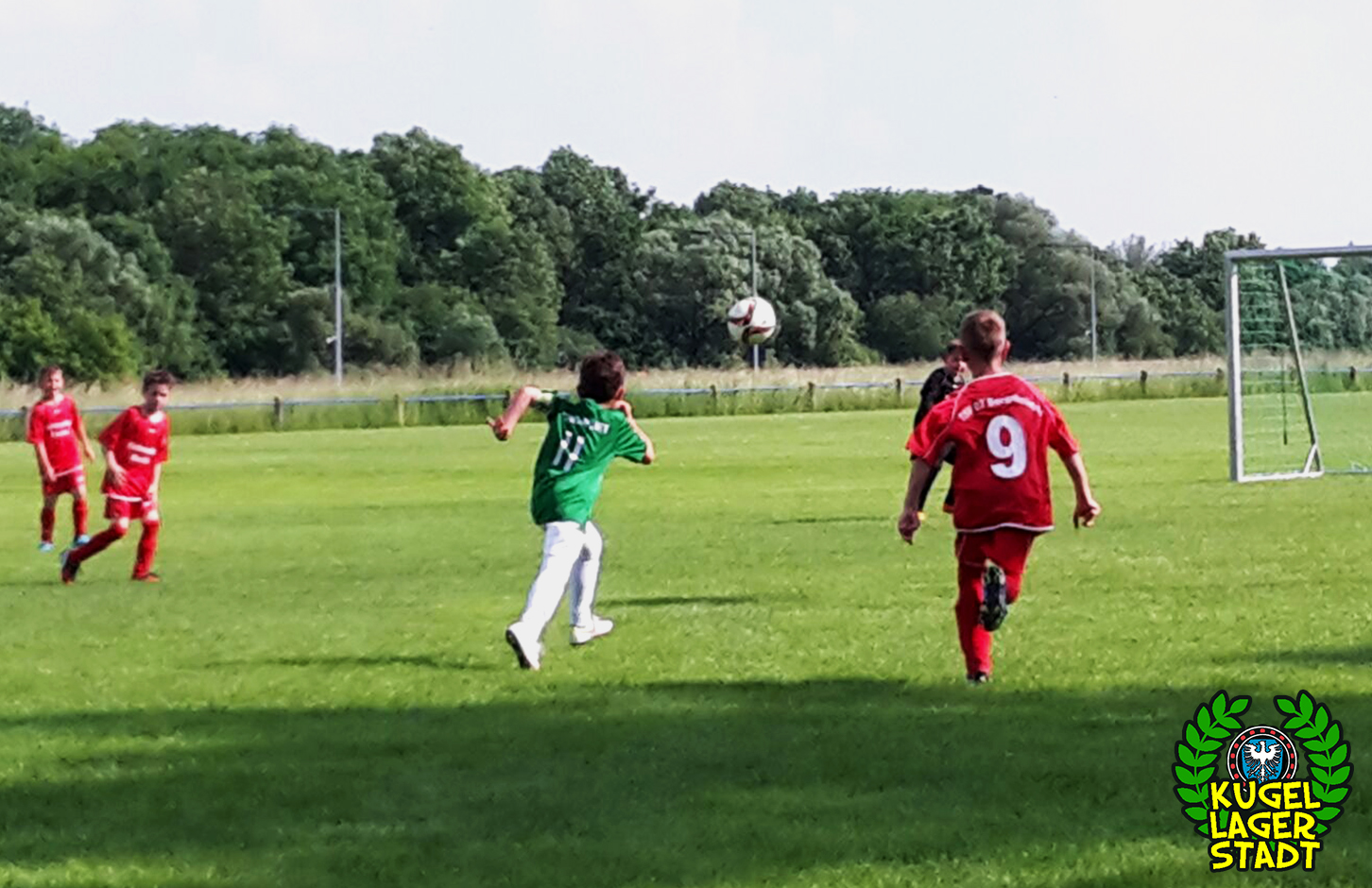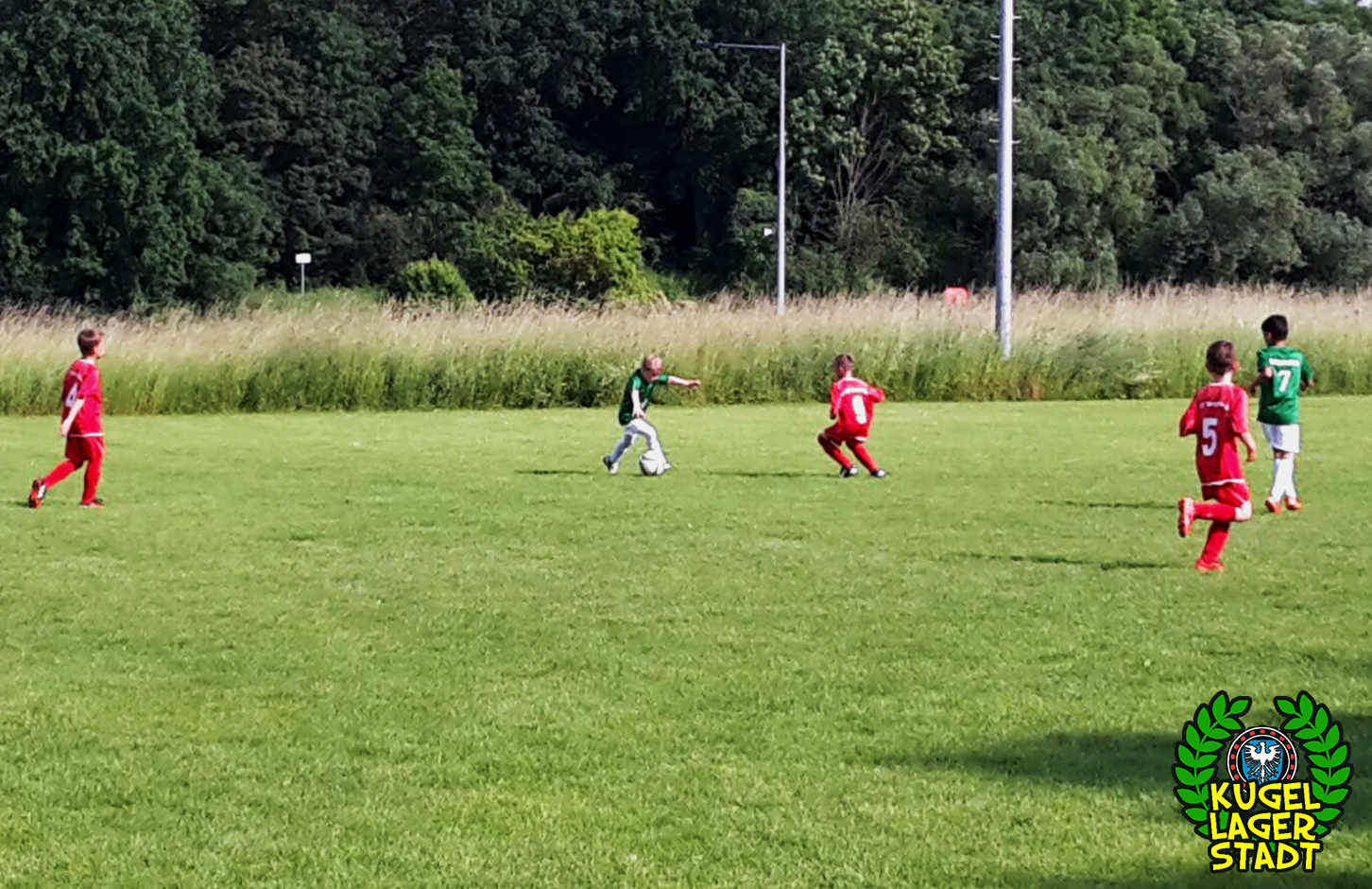Am Montag um 17 Uhr traten unsere Jungs aus der U9 II beim TSV Bergrheinfeld II an, gespielt wurde am Ufer des Mains in Garstadt. Nach 20 Minuten ging es mit einem 3:o-Zwischenstand in die wohlverdiente Pause, um zum Wiederanpfiff aber mal so richtig Gas zu geben! Gab es vielleicht ein Fass mit Zaubertrank von den beiden Trainern Daniel Engelbrecht und Jürgen Härtel? Zu vermuten wäre es allemal. So klingelte es – zwischen der 31. und 33. Minute – innerhalb von nur wenigen Sekunden gleich dreimal (!) im Gehäuse der Bergrheinfelder Mannschaft. Lewandowski?! Nein, Leopold, Tesfazghi und Seyhan waren am Werk! Und die drei genannten Jungs sind nicht einmal bei der EM in Frankreich dabei. Irgendetwas hast du falsch gemacht, Jogi. Kurz vor Schluss sollten dann noch die Treffer zum 9:0, 10:0 und 11:0 folgen. Wieder einmal eine klasse Mannschaftsleistung, Jungs!