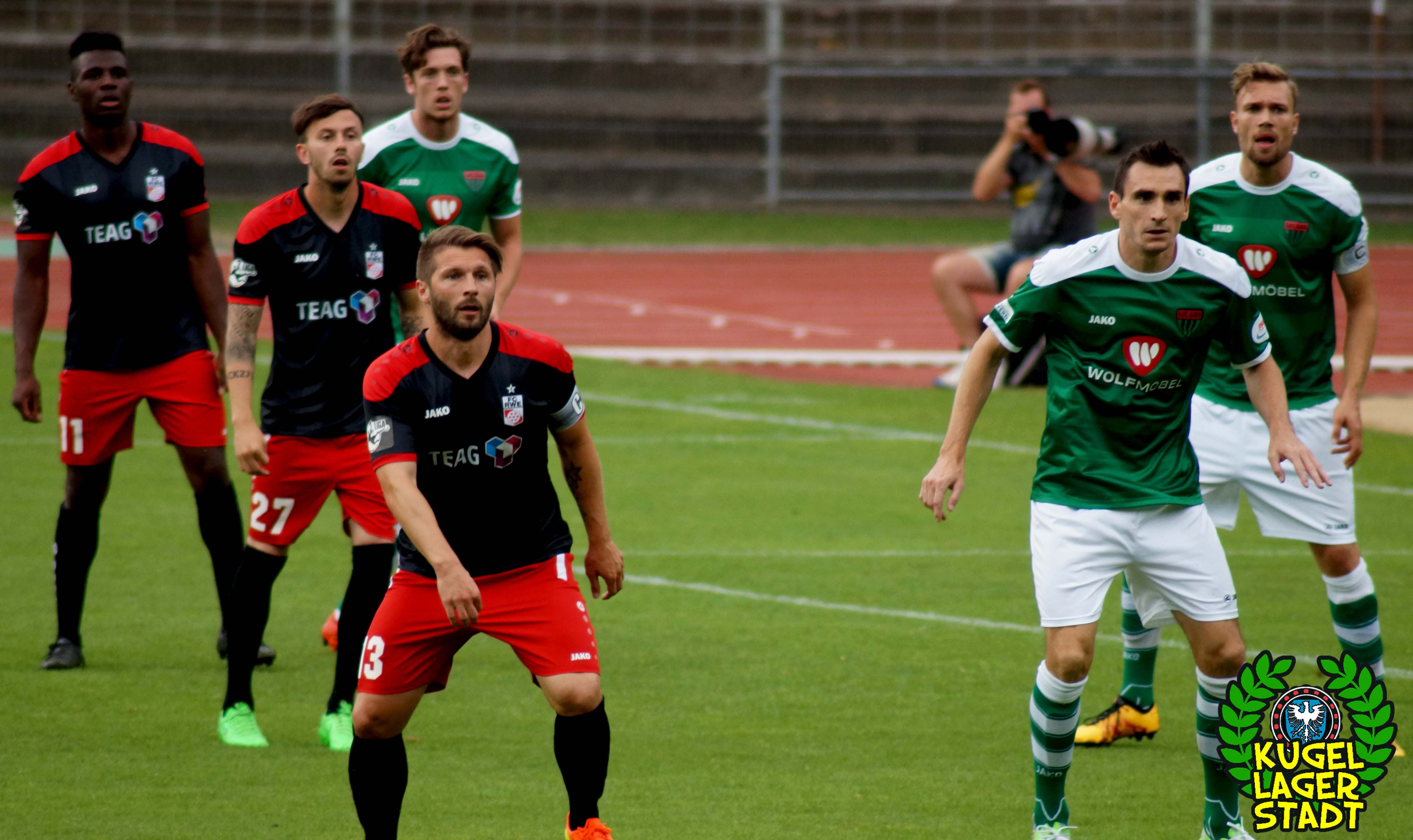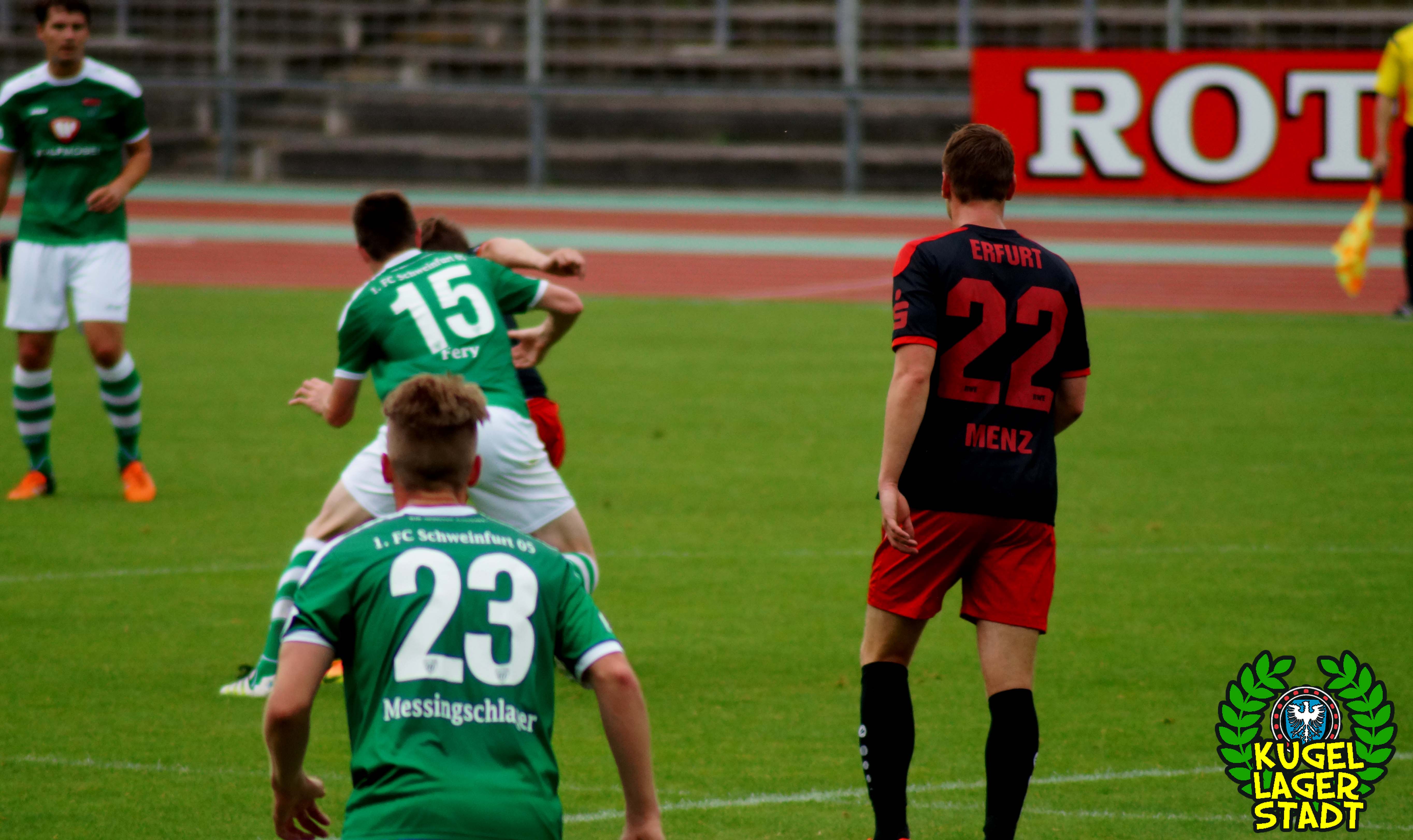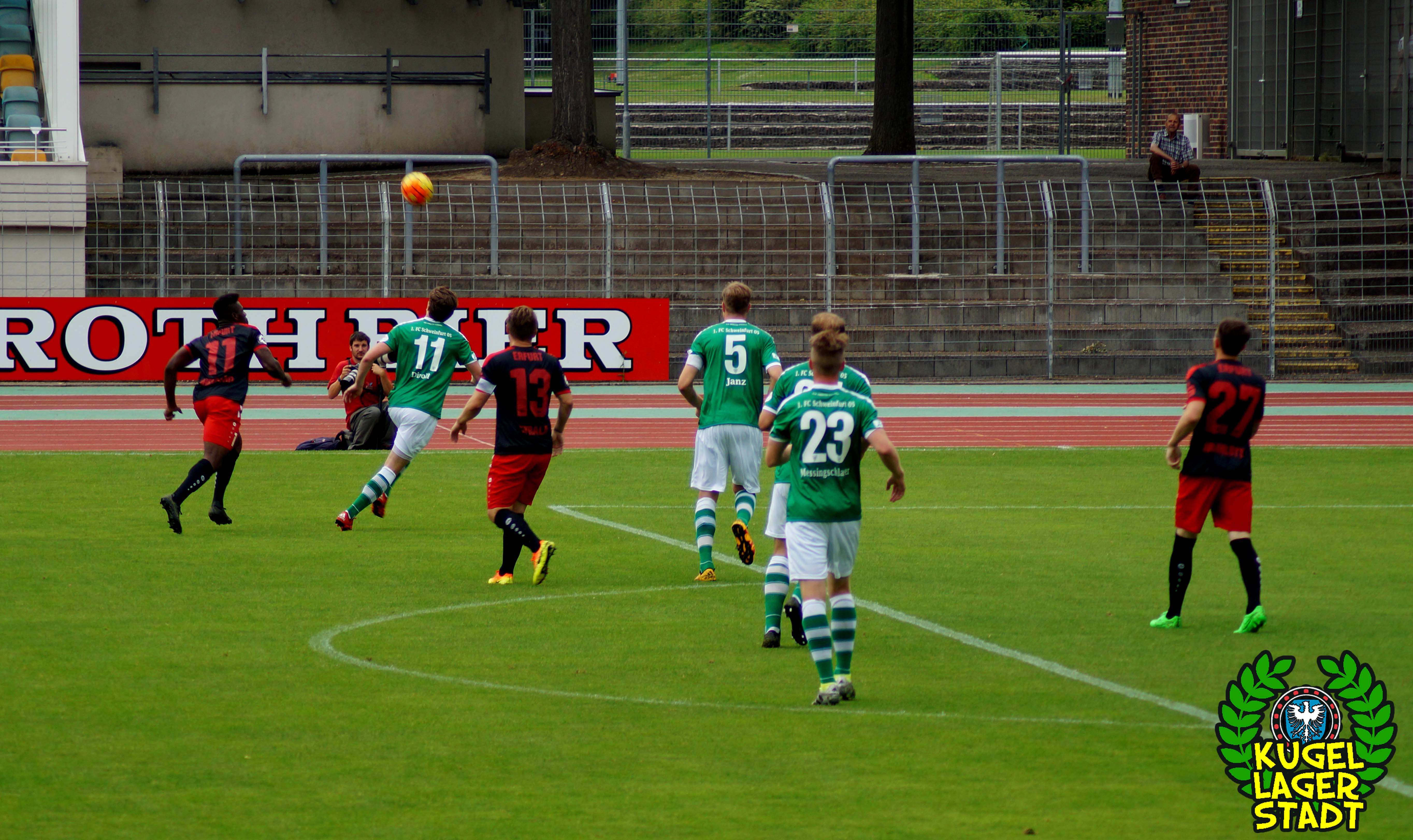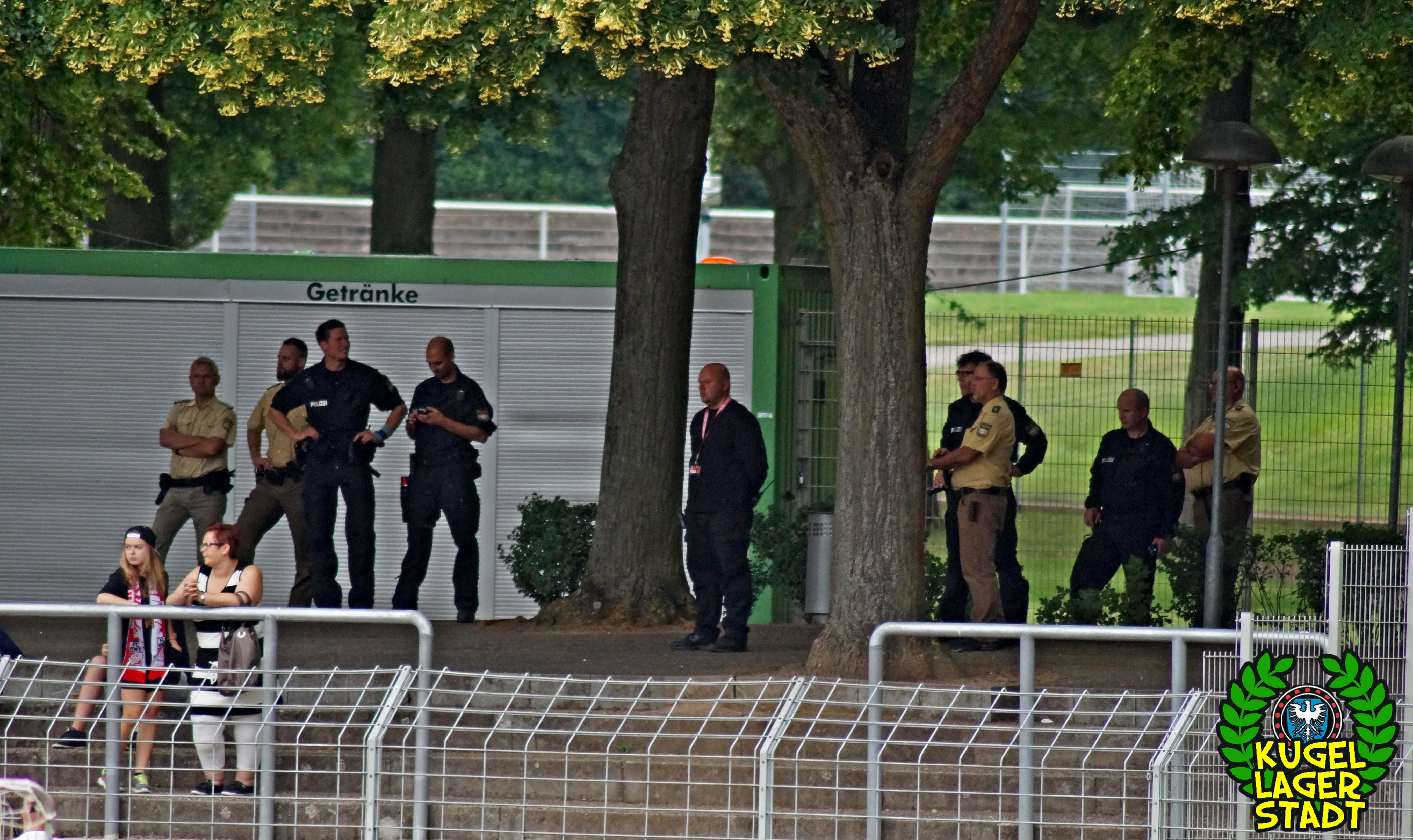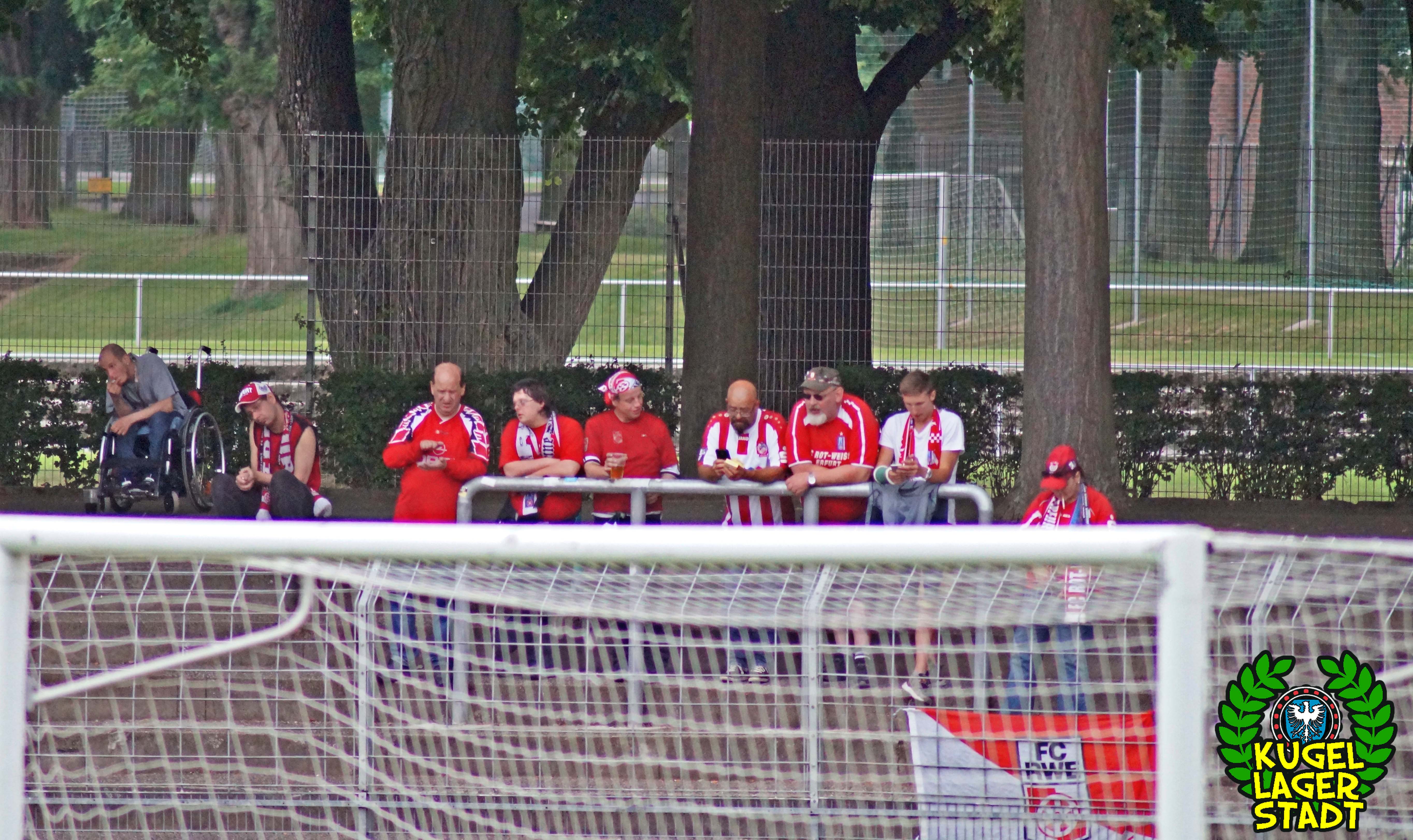 Auch abseits des sportlichen Geschehens durfte sich so mancher Zuschauer die Augen gerieben haben: Schon auf dem Weg zum Stadion wurden zahlenmäßig mehr Polizeibusse mit Belegschaft gesichtet als während der EM in Frankreich. Ein Testspiel als Hochsicherheitsspiel angesetzt, mit einer erzwungenen Vielzahl an Ordnern und einer absurden Masse an Ordnungshütern? UN-BE-GREIF-LICH! Der Grundsatz der Verhältnismäßigkeit konterkariert, auf Kosten des Vereins und des Steuerzahlers. Völlig unverständlich, aber leider nichts neues in unserer schönen Stadt am Main. Mit Kanonen auf Schnüdel! Im Gästeblock der Erfurter immerhin handgezählte 17 (!) Zuschauer. Erwartet hatte man seitens der Staatsmacht offensichtlich eher Massen an russischen und englischen „Fussballfans“, welche die Niederwerrner Straße in Schutt und Asche legen sollten. Da bleibt nur noch ein 90-minütiges Kopfschütteln und die durchaus berechtigte Frage: Haben die eigentlich nichts besseres zu tun?!