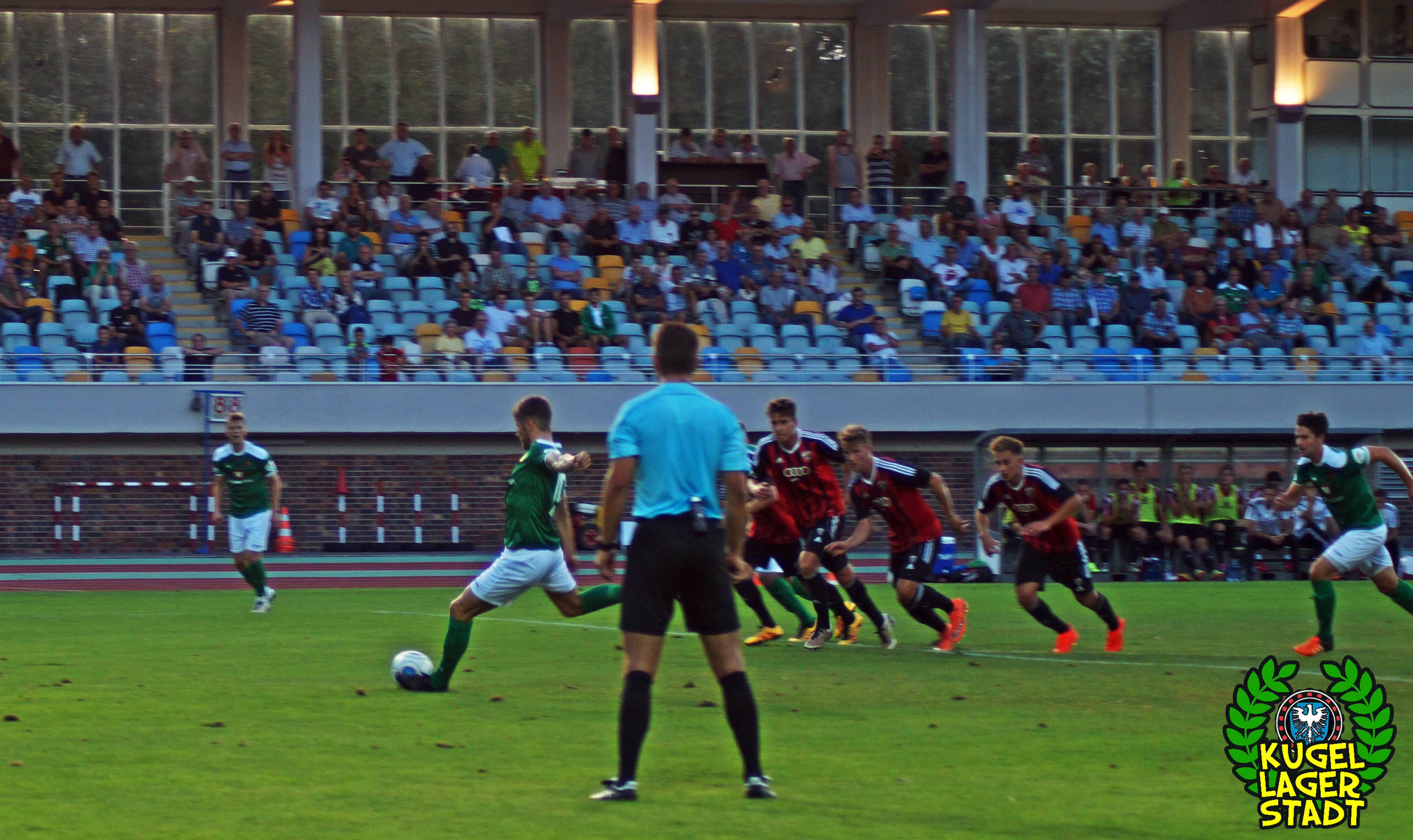 - Zuschauer: 1362 (keine Gästefans, obwohl ein Audi auf dem Stadionvorplatz parkte) –> Stimmungsboykott der Gegengerade nach zahlreichen verhängten Stadionverboten im Zuge der Partie gegen Bayern Hof