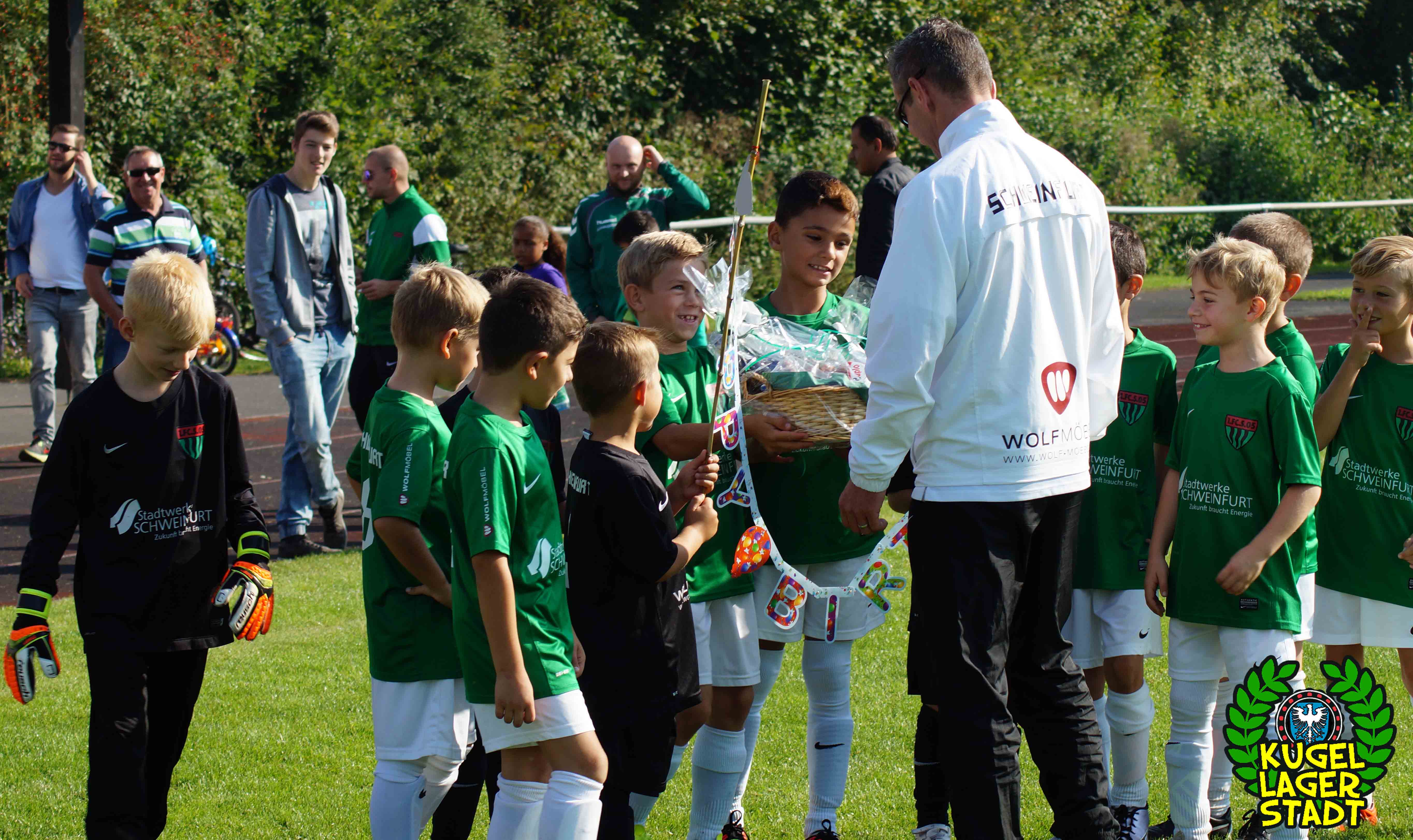 Nach der Partie unserer U8 waren auch unsere U9-Schnüdel in Arnstein im Einsatz. Während der Gegner in den ersten zehn Minuten noch gut dagegenhalten konnte, wurde der Sieg im weiteren Spielverlauf doch recht deutlich. Erfolgreichste Torschützen waren gegen Arnstein – durch ihre Teamkollegen immer wieder klasse in Szene gesetzt – Remo Bauer und Lukas Doda mit je vier Treffern, wobei Lukas seinen Viererpack innerhalb von nur sechs Spielminuten (25. – 31.) erzielte. Glückwunsch zu einer geschlossen starken Mannschaftsleistung und weiter so, Jungs! Herzlichen Glückwunsch auch an Trainer Jürgen Härtel, der am Samstag Geburtstag hatte – man munkelte etwas von 29 oder 30 – und von seinen Jungs 11 Tore und einen Fresskorb geschenkt bekam.