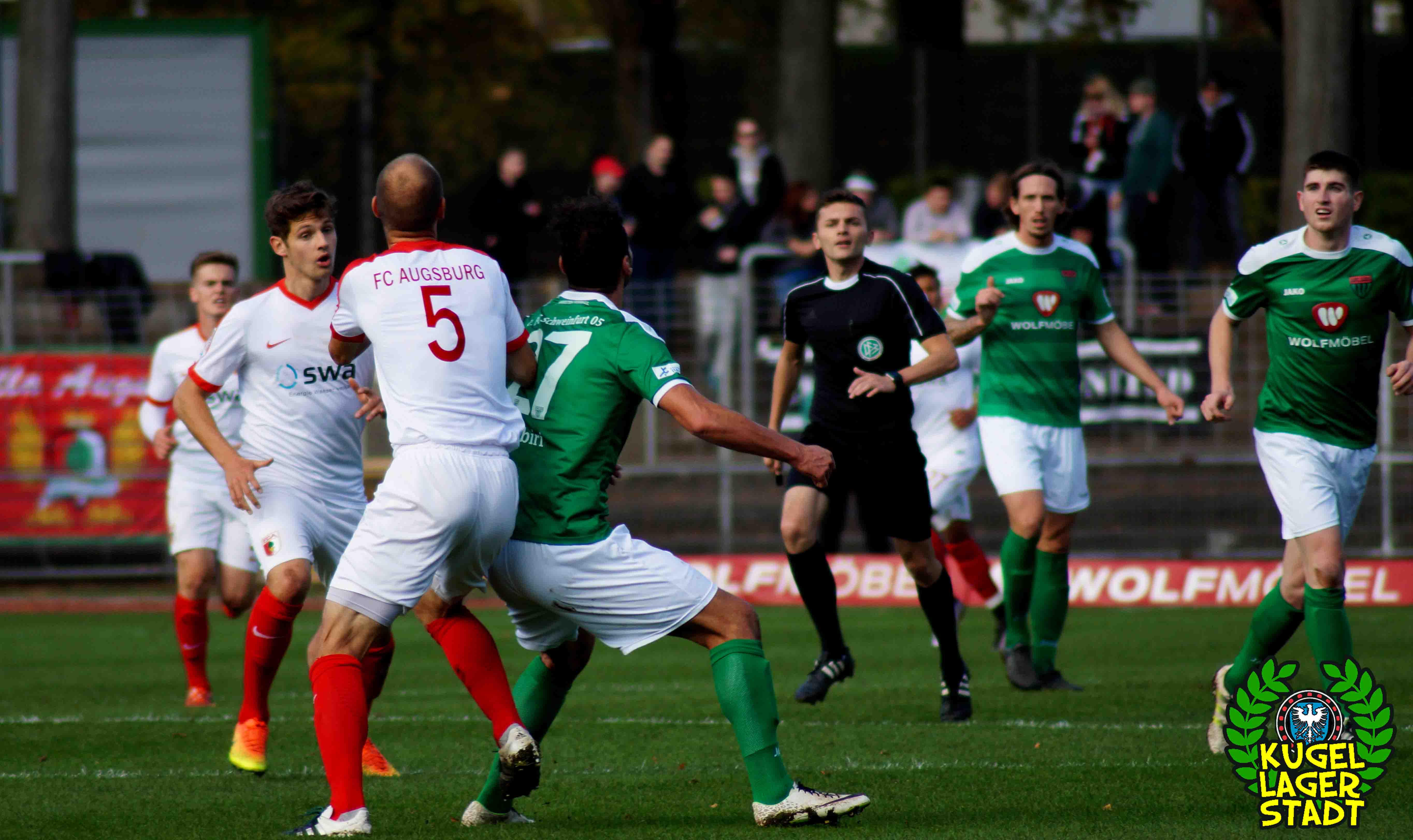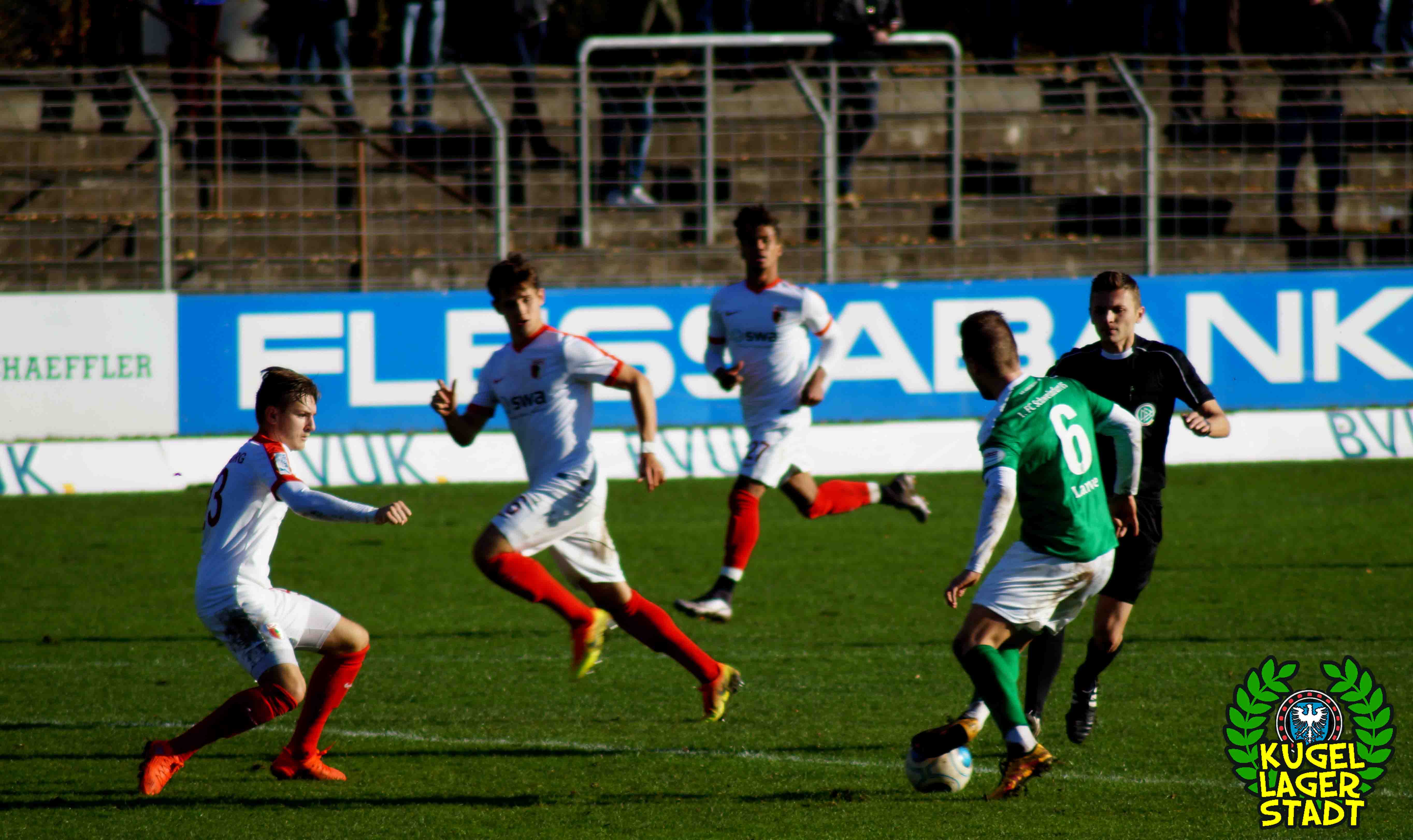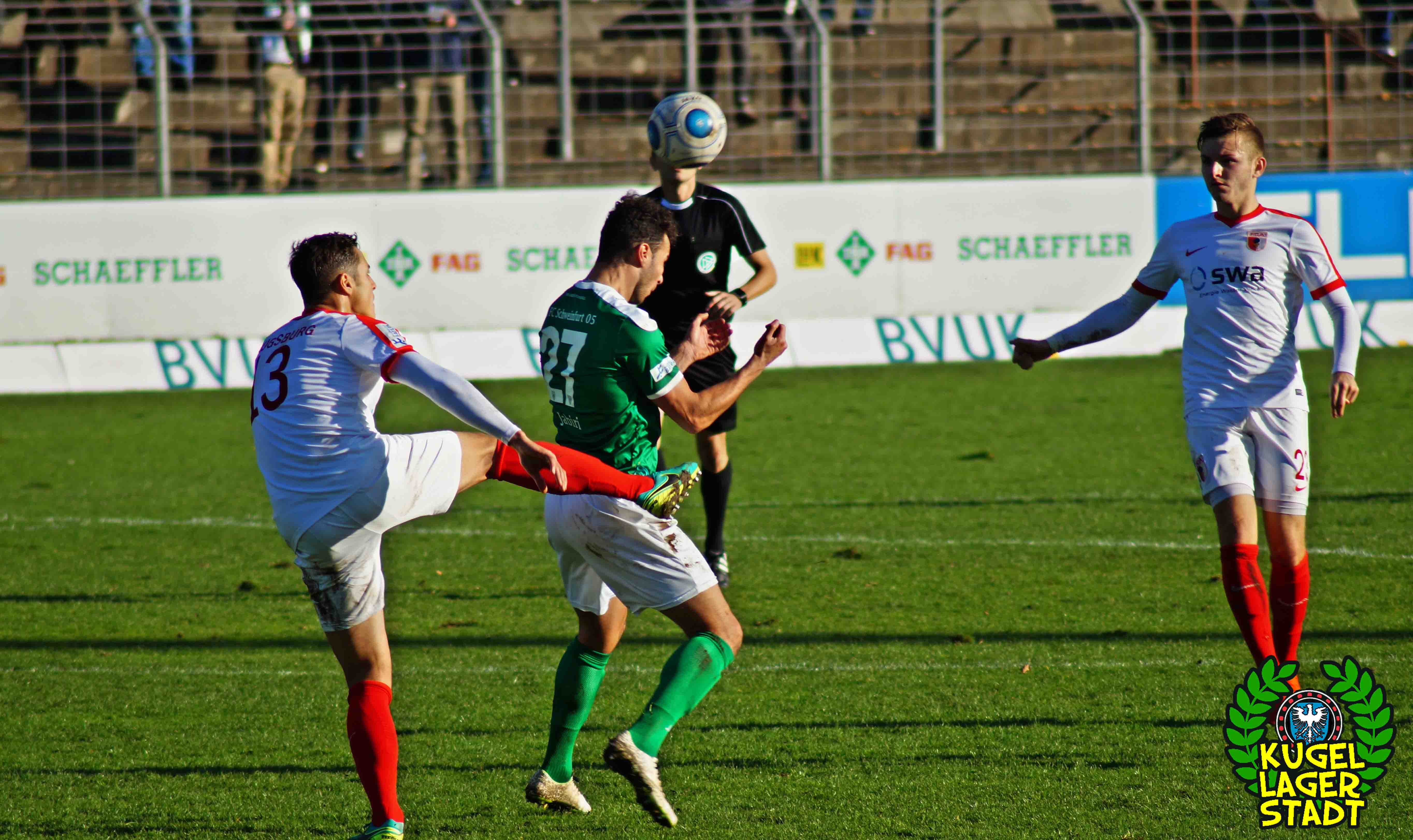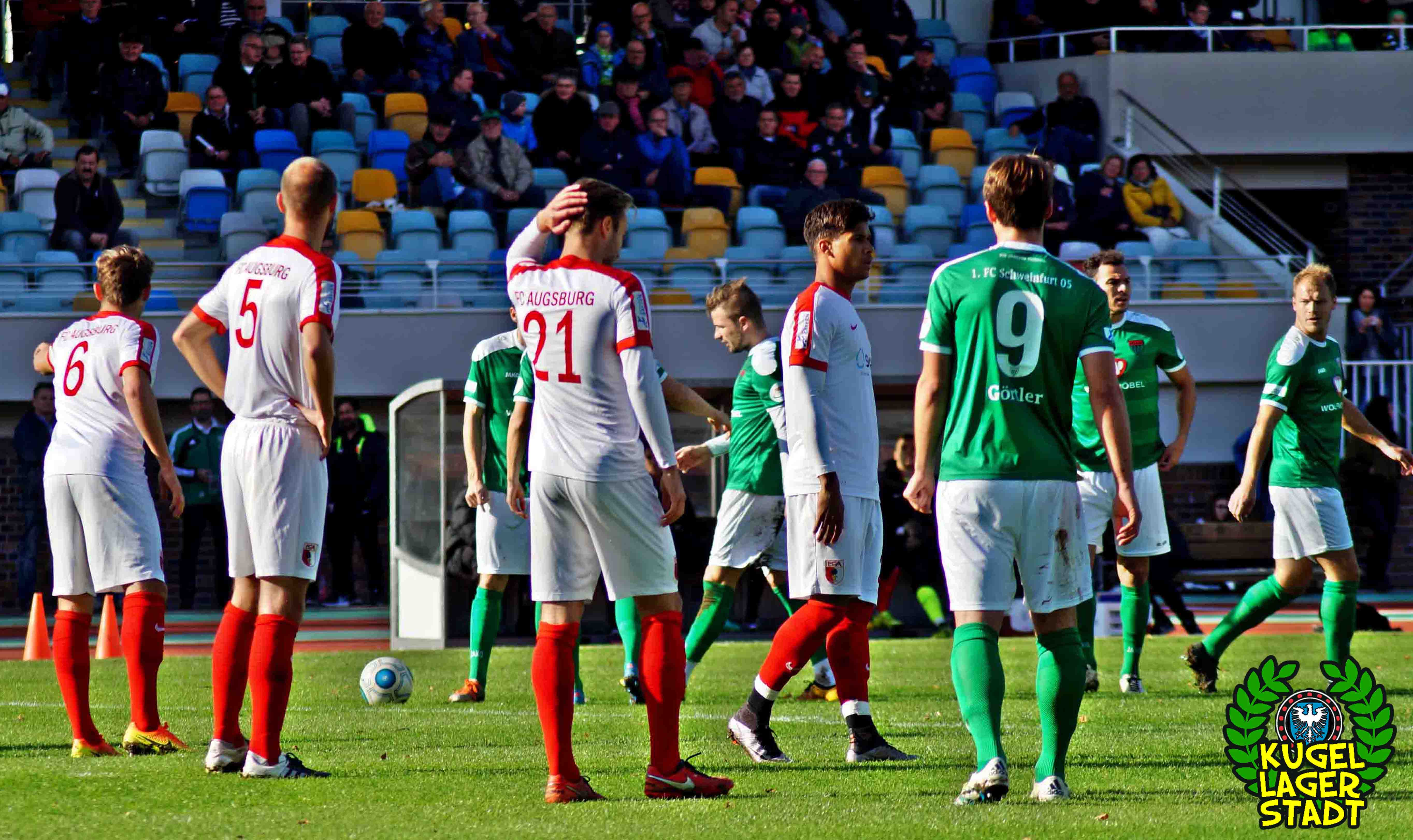 „Alles hat gestimmt: Das Wetter war gut, die Stimmung war gut, der Platz war gut – nur wir waren schlecht.“ Mit dieser seiner Aussage beschreibt Dariusz Wosz das Spiel unserer Schnüdel gegen die Reserve der Fuggerstädter am vergangenen Samstag ganz gut. Wobei die Stimmung zwar besser war als in den letzten Heimspielen, von der Bezeichnung „gut“ jedoch ungefähr soweit entfernt war wie Donald Trump von einer ordentlichen Frisur. Bei wunderschönem Herbstwetter tritt unser FC in den Anfangsminuten dabei durchaus dominant auf und erspielt sich in der siebten Minute eine gute Freistoßposition: Standard-Spezialist Christopher Kracun zirkelt die Kugel aus halbrechter Position direkt zum frühen 1:0 ins Eck. Nach 22 gespielten Minuten folgt das, was unseren Grün-Weißen in dieser Halbserie schon zu oft passiert ist: Der Gegner kommt mit seiner ersten Chance, die dazu eigentlich gar keine richtige Chance ist, zum Ausgleich aus dem Nichts. Nach umstrittenen Freistoß-Pfiff bringt Della Schiava den Ball hoch in die Mitte, wo ihn FCA-Stürmer Greisel mit dem Hinterkopf im Schweinfurter Tor unterbringt. 1:1 und keiner weiß eigentlich warum! Knappe zehn Minuten vor der Pause gibt es nach einem Augsburger Handspiel im Strafraum den fälligen Elfmeter für unseren FC05: Steffen Krautschneider tritt an, knallt das Spielgerät an den Pfosten, um im direkten Nachschuss doch noch einzunetzen, was laut Regelwerk aber verboten ist. So geht es also mit einem Remis in die Halbzeit. Im zweiten Durchgang kreieren unsere Kugellagerstädter zwar ordentliche Torchancen, der Abschluss landet jedoch meist in den Händen des gut aufgelegten Augsburger Torhüters mit dem passenden Namen Kastenmeier. In vorderster Front vergibt Stürmer Adam Jabiri (42. Minute & 57. Minute) fast kläglich zwei riesige Chancen, während auch die beiden Joker Marco Janz und Pedro Güthermann am Tor vorbeizielen.
