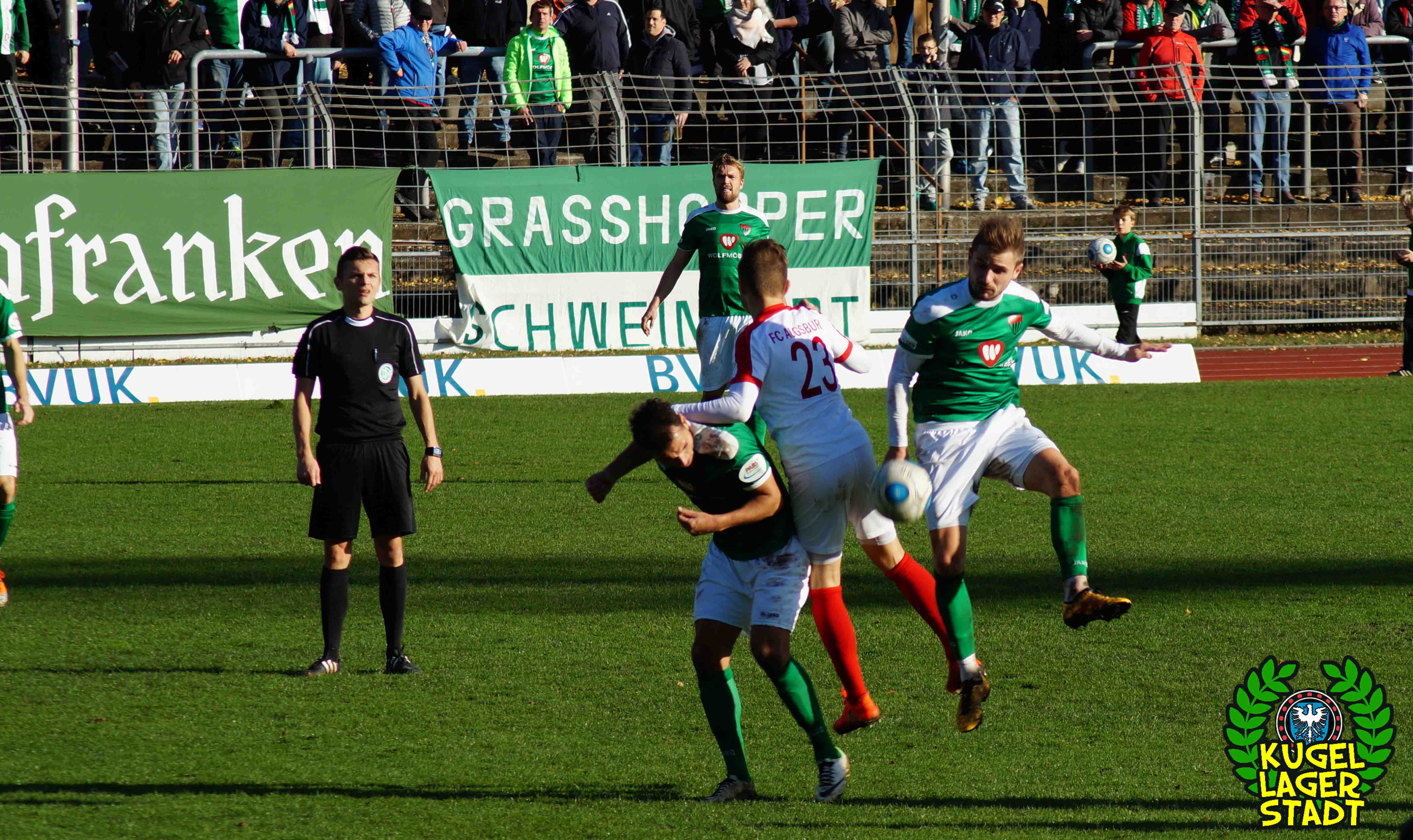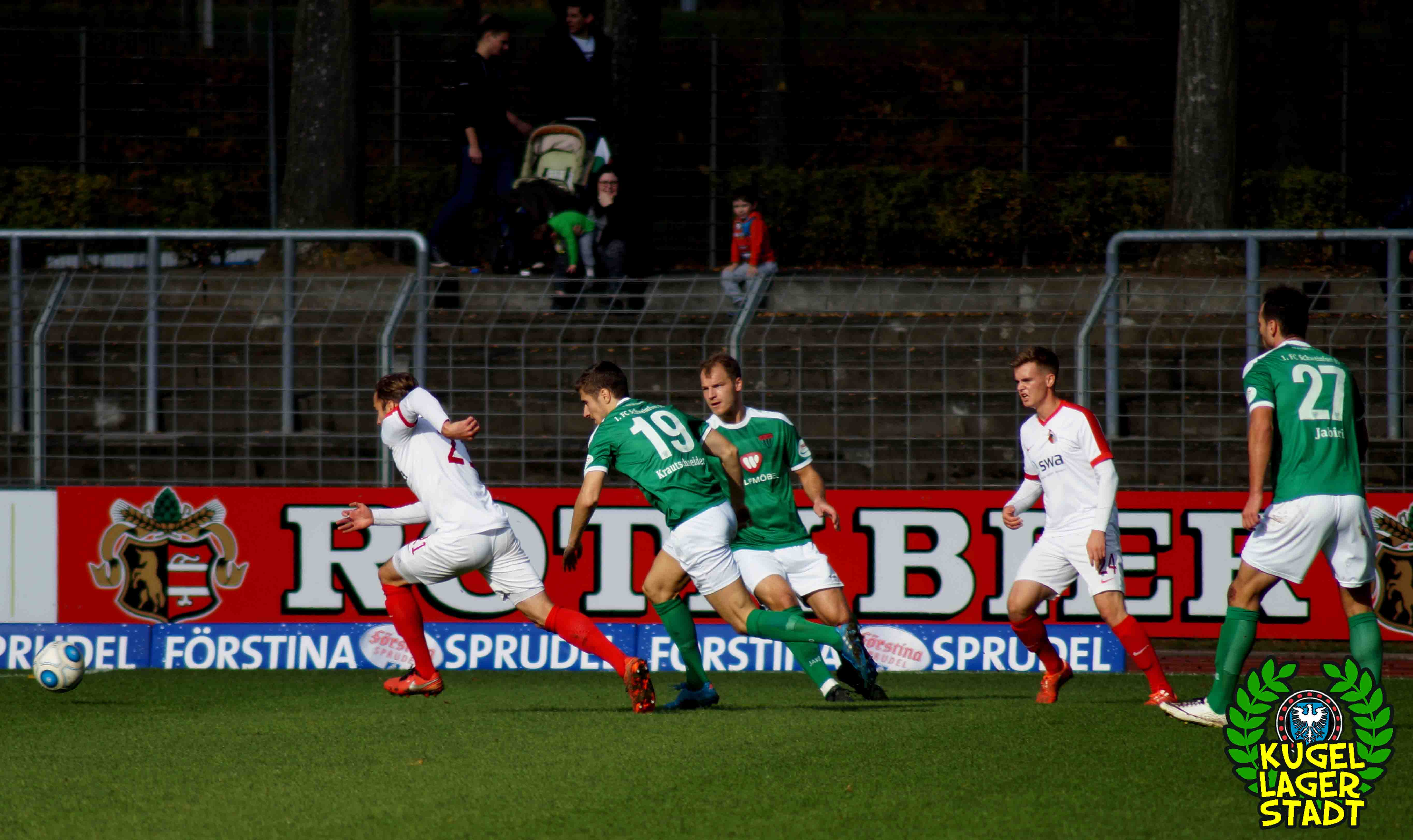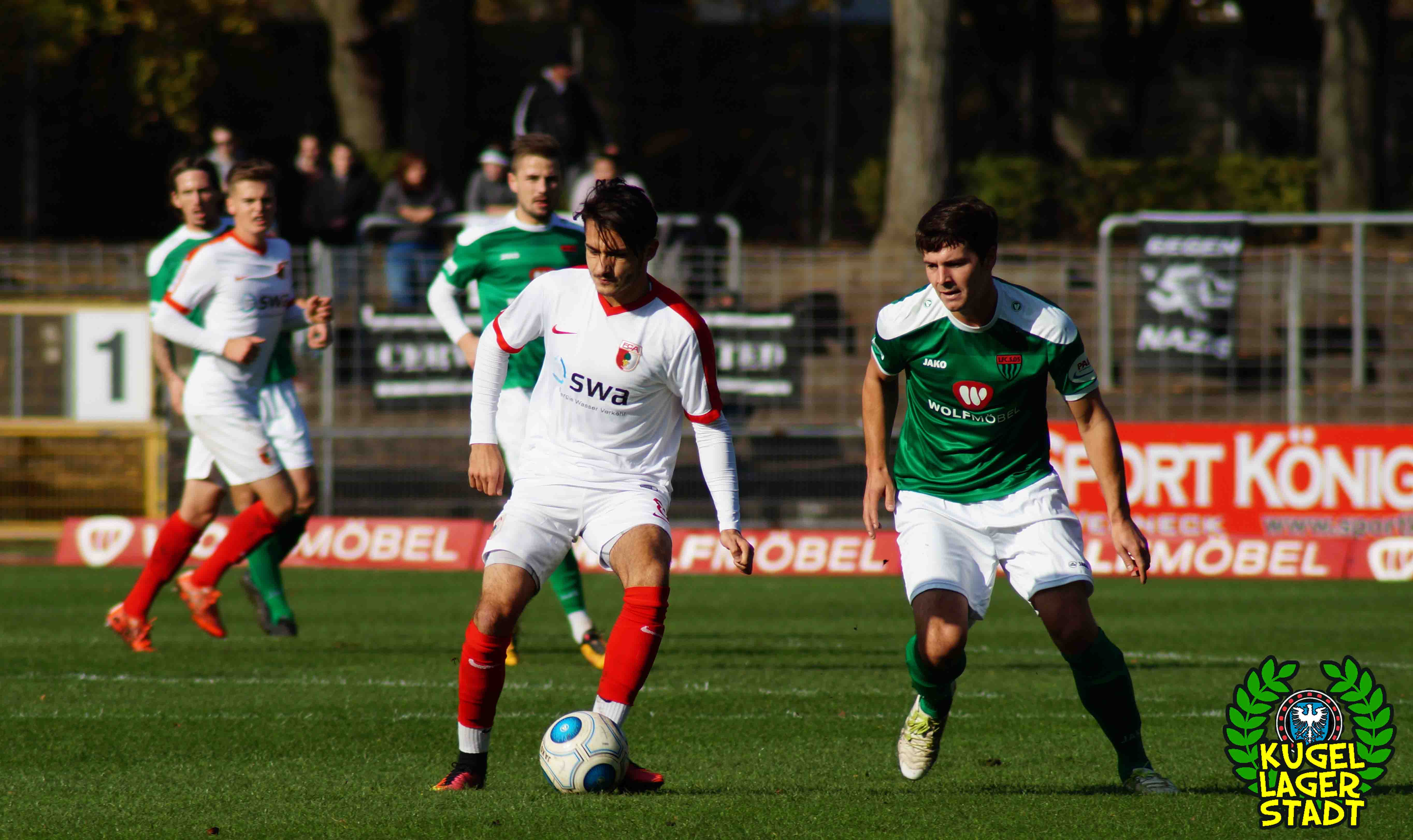 „Alles hat gestimmt: Das Wetter war gut, die Stimmung war gut, der Platz war gut – nur wir waren schlecht.“ Mit dieser seiner Aussage beschreibt Dariusz Wosz das Spiel unserer Schnüdel gegen die Reserve der Fuggerstädter am vergangenen Samstag ganz gut. Wobei die Stimmung zwar besser war als in den letzten Heimspielen, von der Bezeichnung „gut“ jedoch ungefähr soweit entfernt war wie Donald Trump von einer ordentlichen Frisur. Bei wunderschönem Herbstwetter tritt unser FC in den Anfangsminuten dabei durchaus dominant auf und erspielt sich in der siebten Minute eine gute Freistoßposition: Standard-Spezialist Christopher Kracun zirkelt die Kugel aus halbrechter Position direkt zum frühen 1:0 ins Eck. Nach 22 gespielten Minuten folgt das, was unseren Grün-Weißen in dieser Halbserie schon zu oft passiert ist: Der Gegner kommt mit seiner ersten Chance, die dazu eigentlich gar keine richtige Chance ist, zum Ausgleich aus dem Nichts. Nach umstrittenen Freistoß-Pfiff bringt Della Schiava den Ball hoch in die Mitte, wo ihn FCA-Stürmer Greisel mit dem Hinterkopf im Schweinfurter Tor unterbringt. 1:1 und keiner weiß eigentlich warum! Knappe zehn Minuten vor der Pause gibt es nach einem Augsburger Handspiel im Strafraum den fälligen Elfmeter für unseren FC05: Steffen Krautschneider tritt an, knallt das Spielgerät an den Pfosten, um im direkten Nachschuss doch noch einzunetzen, was laut Regelwerk aber verboten ist. So geht es also mit einem Remis in die Halbzeit. Im zweiten Durchgang kreieren unsere Kugellagerstädter zwar ordentliche Torchancen, der Abschluss landet jedoch meist in den Händen des gut aufgelegten Augsburger Torhüters mit dem passenden Namen Kastenmeier. In vorderster Front vergibt Stürmer Adam Jabiri (42. Minute & 57. Minute) fast kläglich zwei riesige Chancen, während auch die beiden Joker Marco Janz und Pedro Güthermann am Tor vorbeizielen.