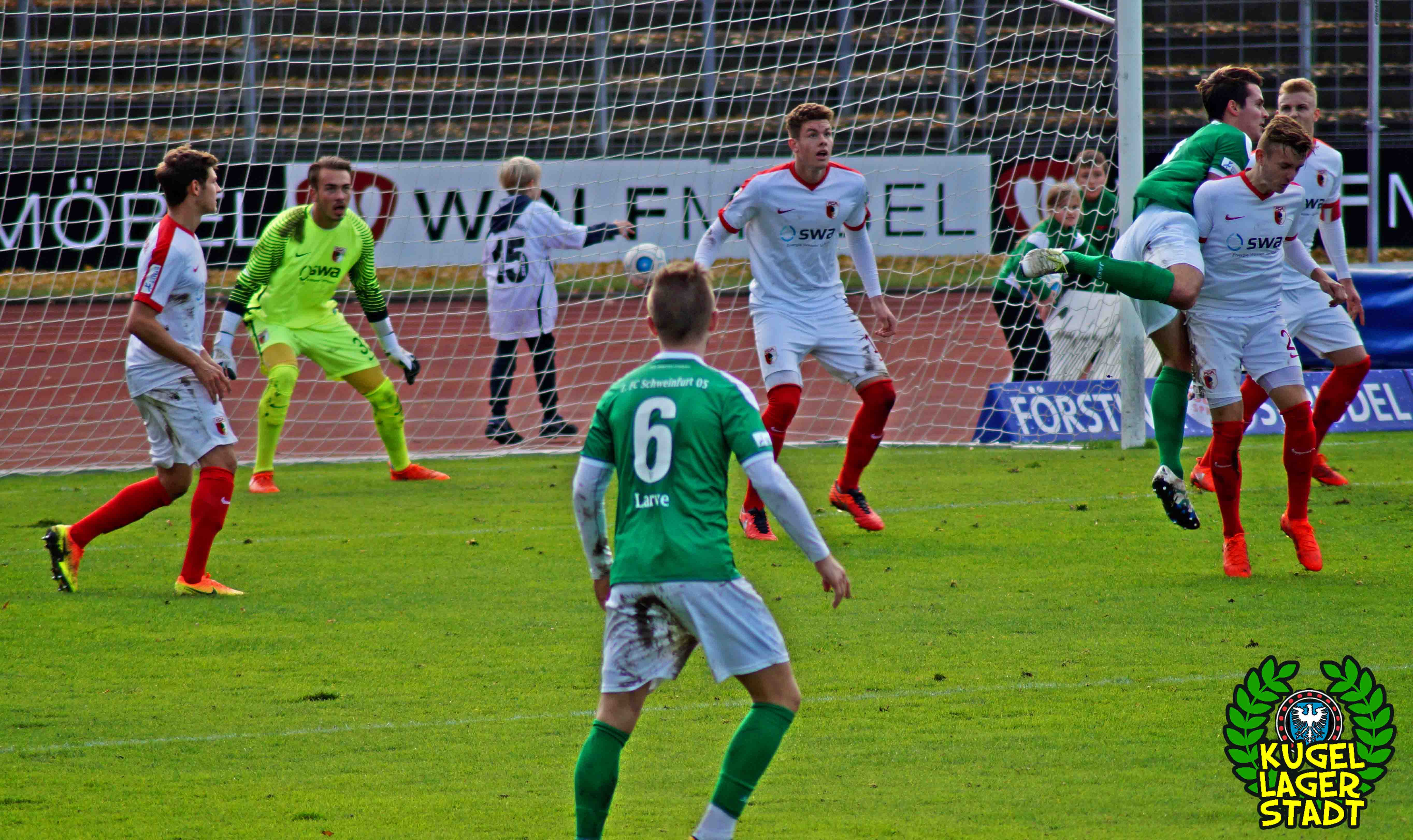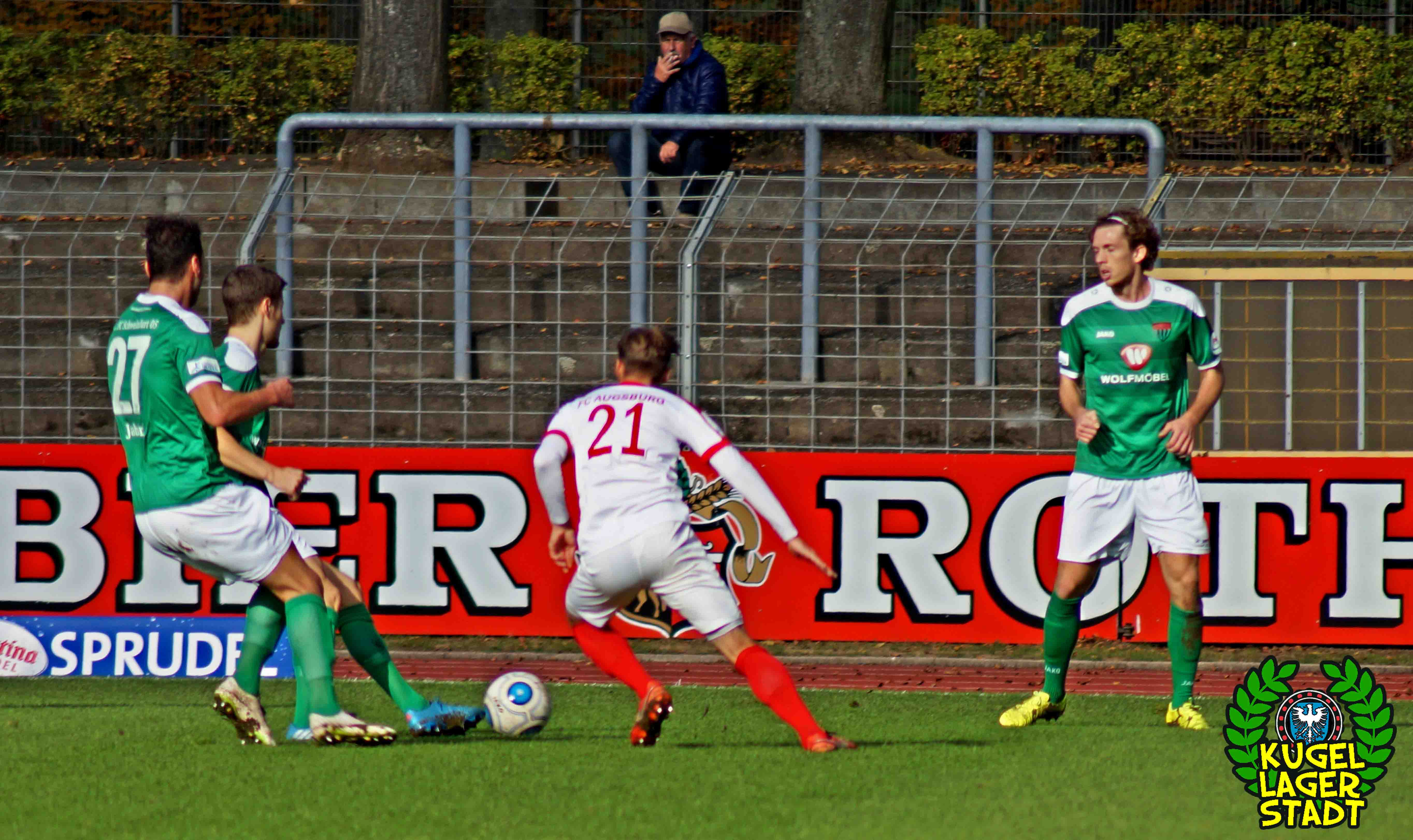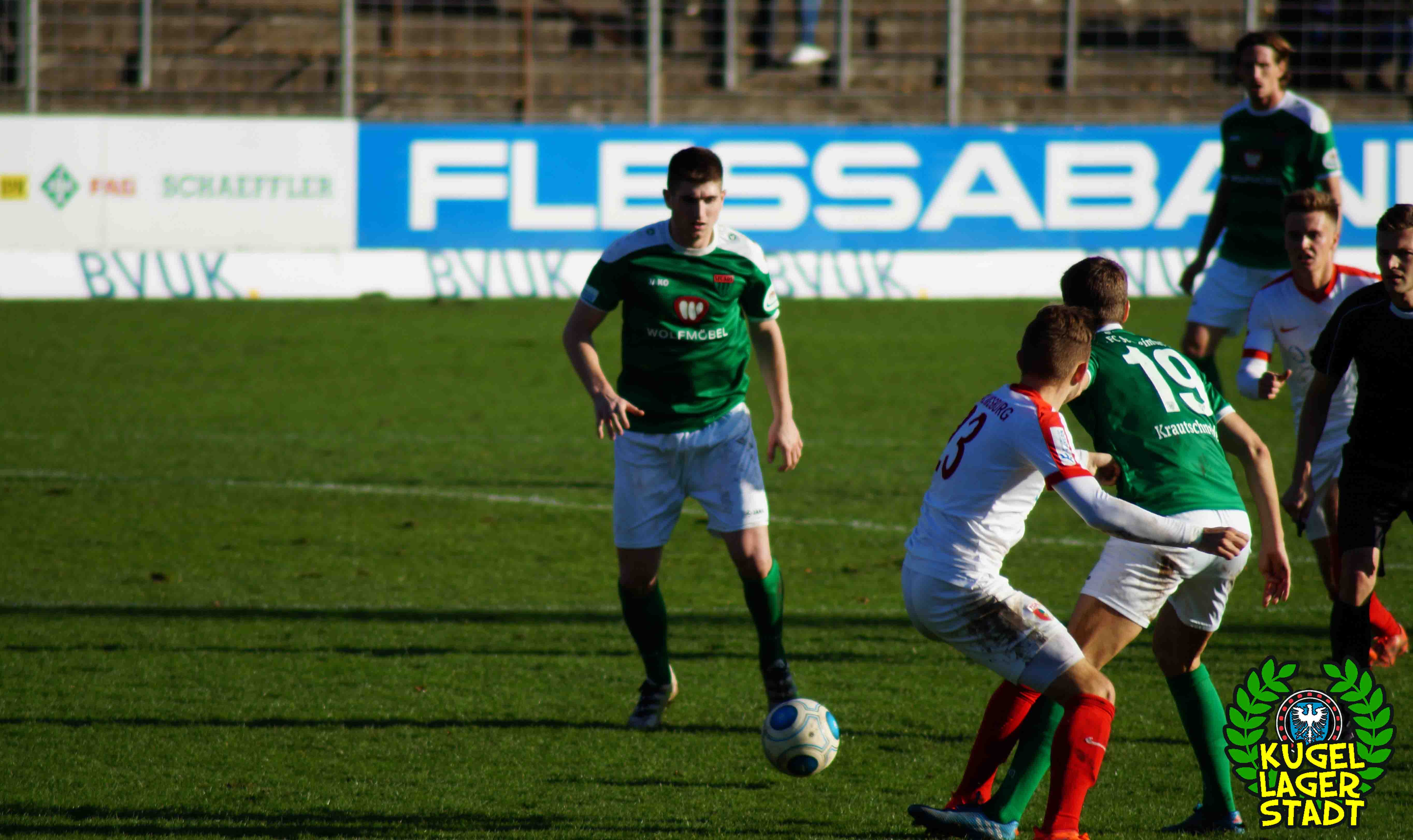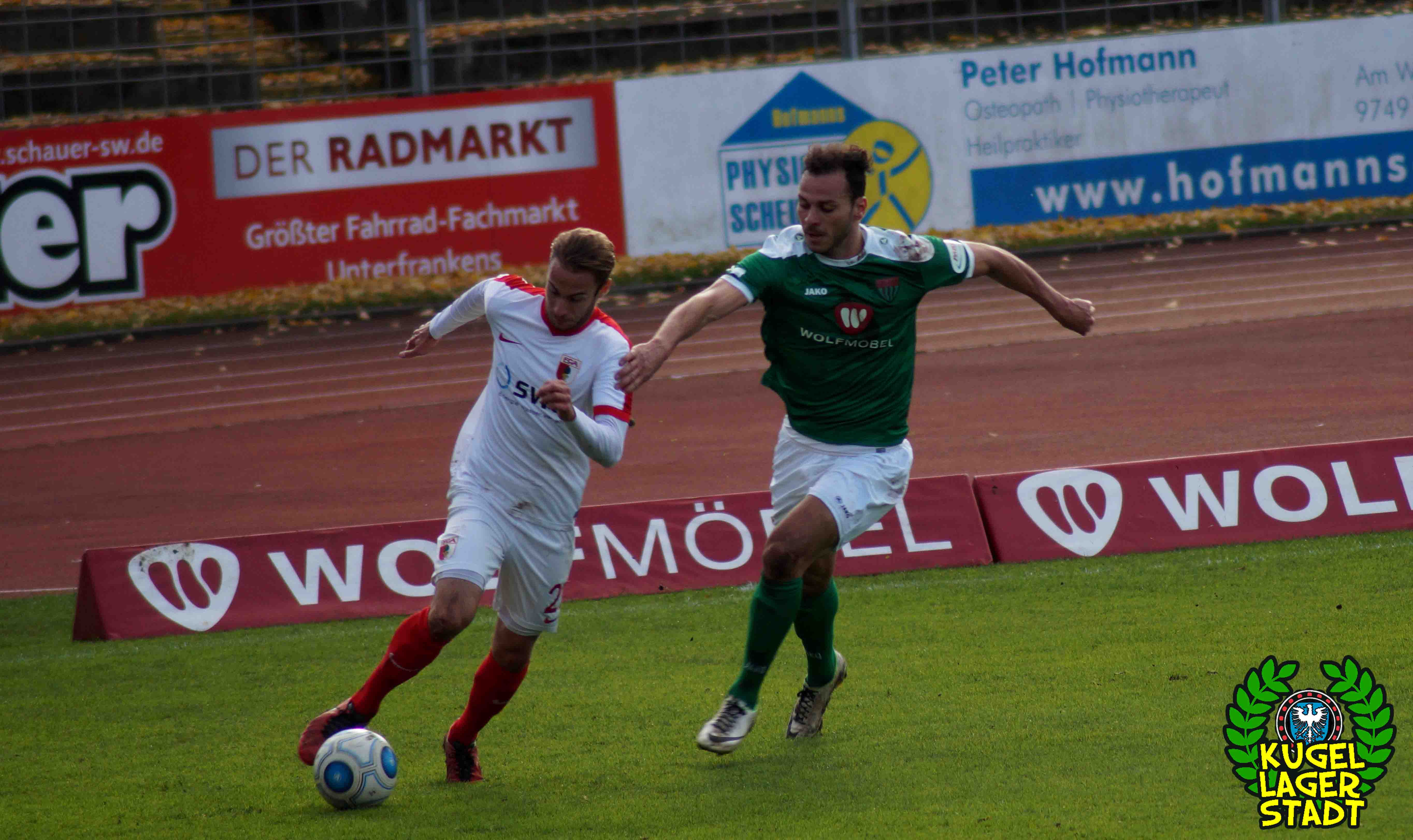 „Alles hat gestimmt: Das Wetter war gut, die Stimmung war gut, der Platz war gut – nur wir waren schlecht.“ Mit dieser seiner Aussage beschreibt Dariusz Wosz das Spiel unserer Schnüdel gegen die Reserve der Fuggerstädter am vergangenen Samstag ganz gut. Wobei die Stimmung zwar besser war als in den letzten Heimspielen, von der Bezeichnung „gut“ jedoch ungefähr soweit entfernt war wie Donald Trump von einer ordentlichen Frisur. Bei wunderschönem Herbstwetter tritt unser FC in den Anfangsminuten dabei durchaus dominant auf und erspielt sich in der siebten Minute eine gute Freistoßposition: Standard-Spezialist Christopher Kracun zirkelt die Kugel aus halbrechter Position direkt zum frühen 1:0 ins Eck. Nach 22 gespielten Minuten folgt das, was unseren Grün-Weißen in dieser Halbserie schon zu oft passiert ist: Der Gegner kommt mit seiner ersten Chance, die dazu eigentlich gar keine richtige Chance ist, zum Ausgleich aus dem Nichts. Nach umstrittenen Freistoß-Pfiff bringt Della Schiava den Ball hoch in die Mitte, wo ihn FCA-Stürmer Greisel mit dem Hinterkopf im Schweinfurter Tor unterbringt. 1:1 und keiner weiß eigentlich warum! Knappe zehn Minuten vor der Pause gibt es nach einem Augsburger Handspiel im Strafraum den fälligen Elfmeter für unseren FC05: Steffen Krautschneider tritt an, knallt das Spielgerät an den Pfosten, um im direkten Nachschuss doch noch einzunetzen, was laut Regelwerk aber verboten ist. So geht es also mit einem Remis in die Halbzeit. Im zweiten Durchgang kreieren unsere Kugellagerstädter zwar ordentliche Torchancen, der Abschluss landet jedoch meist in den Händen des gut aufgelegten Augsburger Torhüters mit dem passenden Namen Kastenmeier. In vorderster Front vergibt Stürmer Adam Jabiri (42. Minute & 57. Minute) fast kläglich zwei riesige Chancen, während auch die beiden Joker Marco Janz und Pedro Güthermann am Tor vorbeizielen.