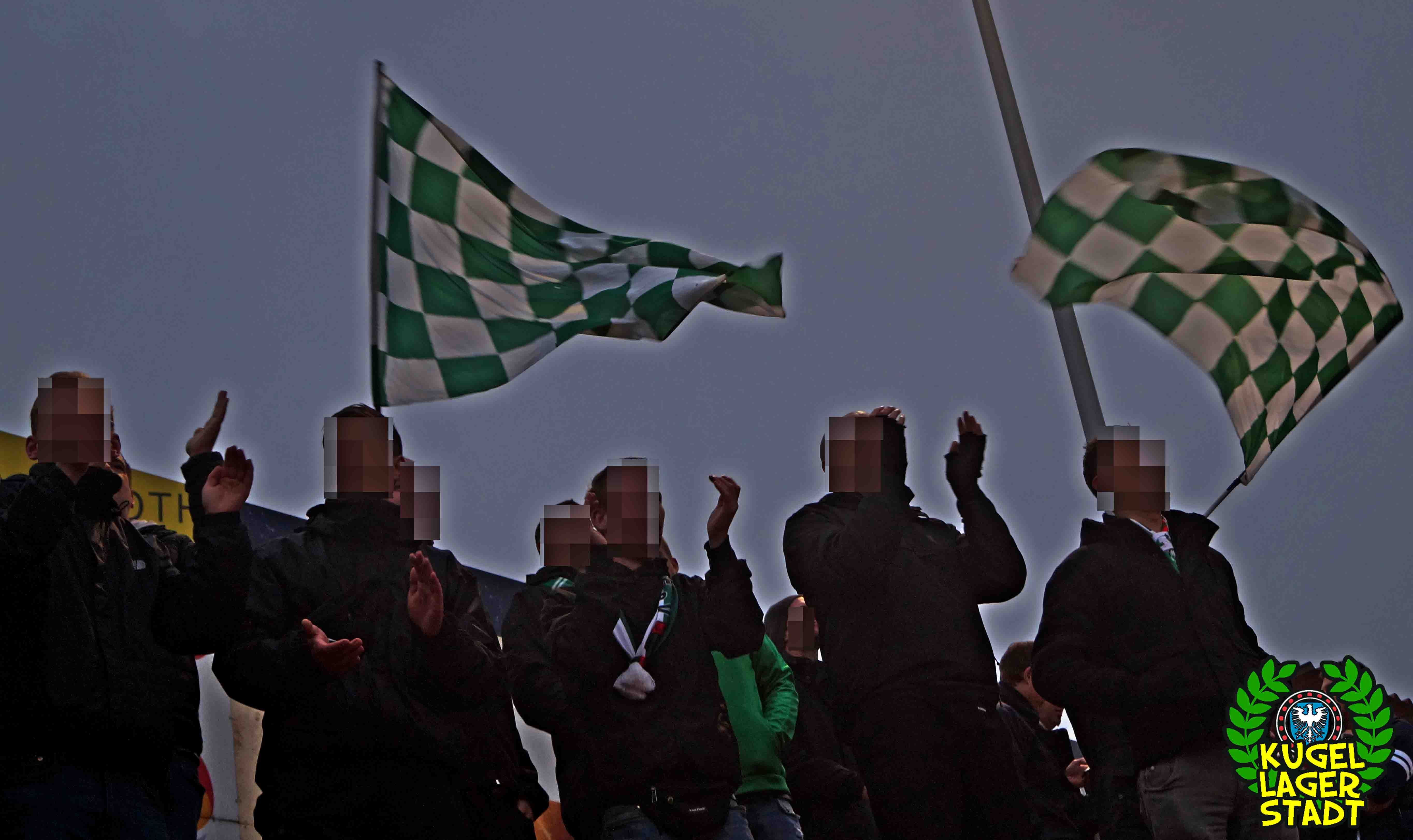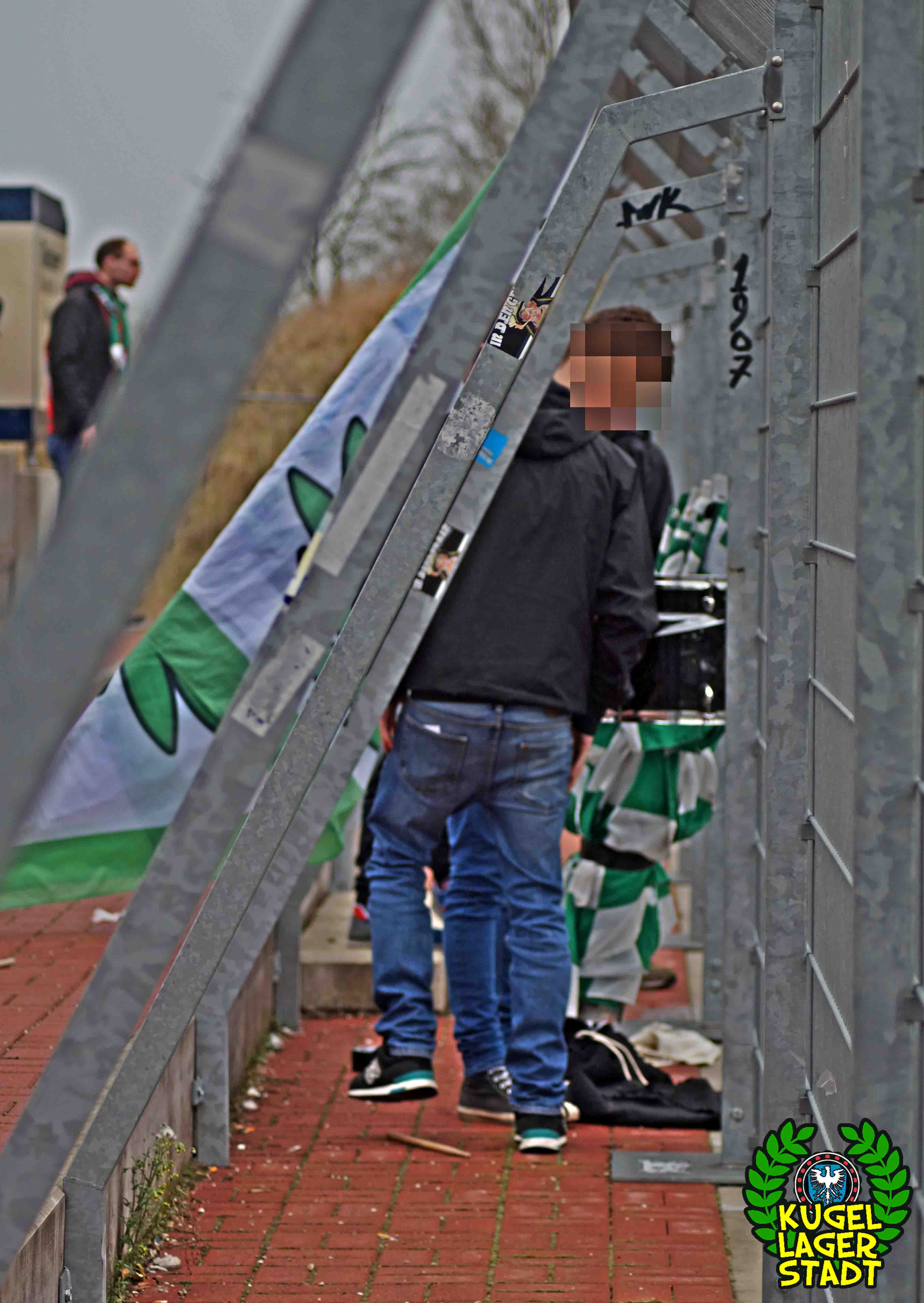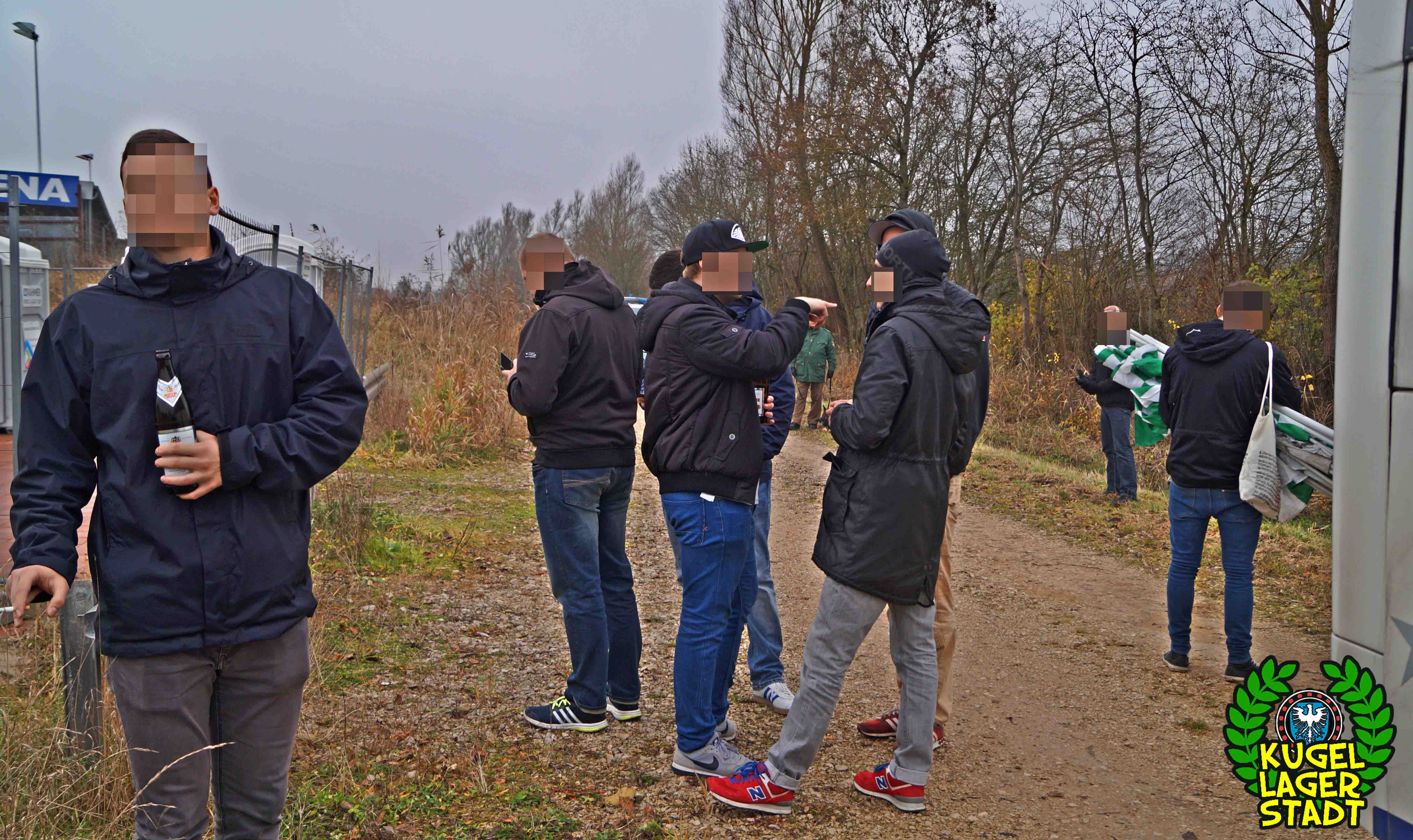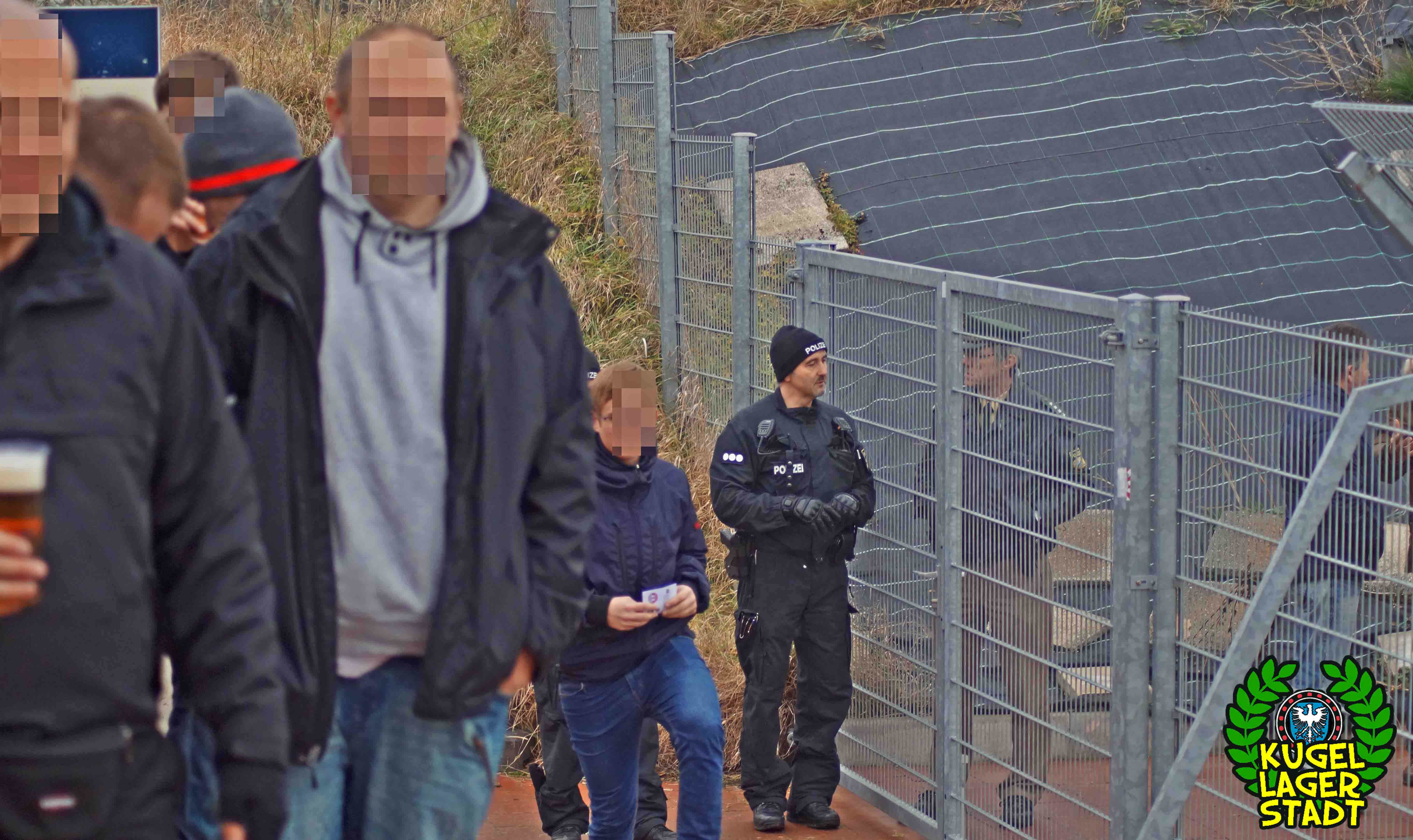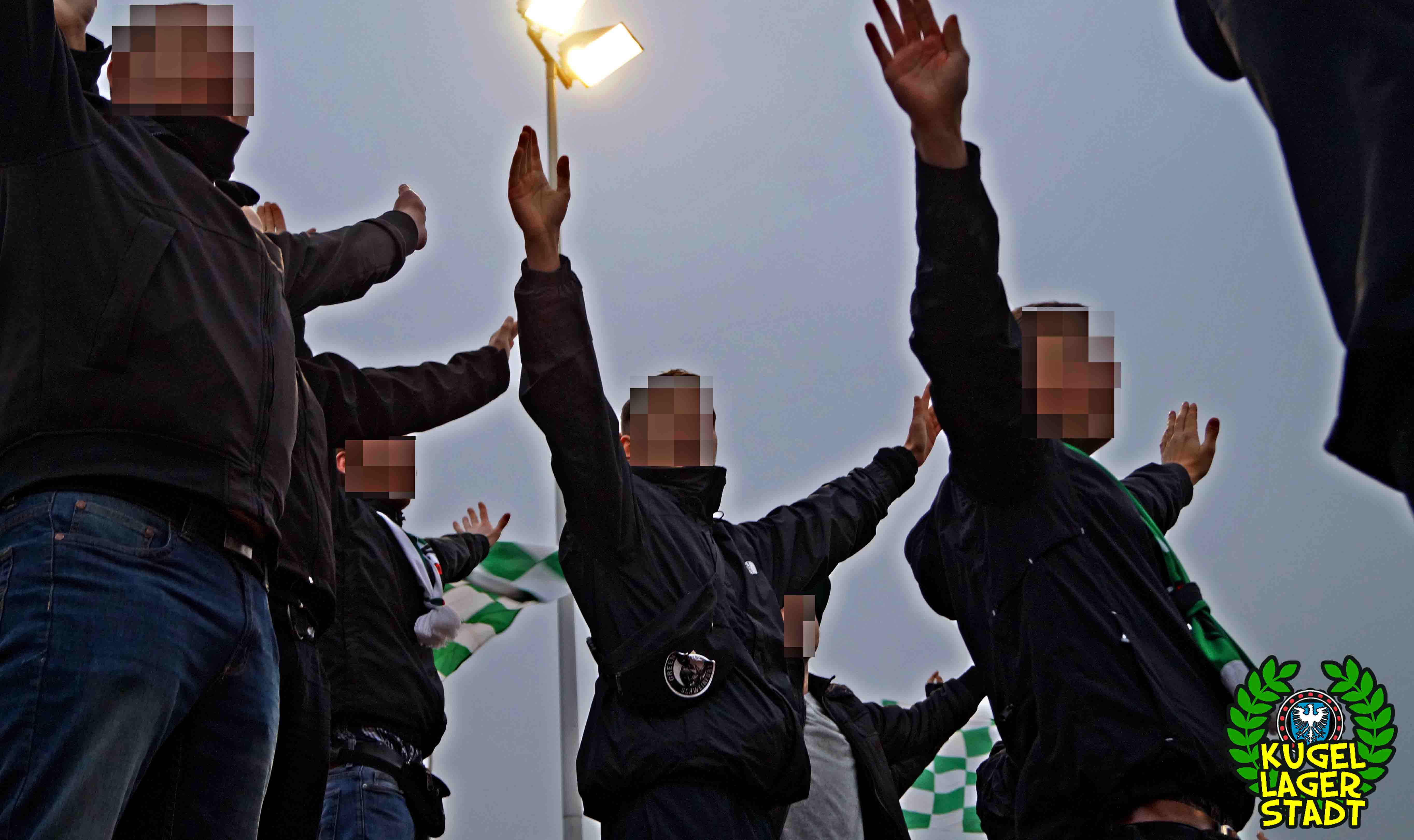 Die Stadtgrenze in Form der Hahnenhügelbrücke war gerade so passiert, als auch schon die Toilettentür streikte. Einfach so, ohne jegliche Fremdeinwirkung, so munkelt man. Nach zwei kurzen Zwischenstops, welche zur Aufnahme weiterer Mitreisender führten und unseren sogenannten Busfahrer zu vogelwilden Rangiermanövern an der ARAL-Tankstelle zwangen (O-Ton: „Ach du Schei**, was fährt der denn zusammen? Hat mal jemand kontrolliert, ob der gute Mann nüchtern ist?!“) kam letztendlich ein gutgelaunter Schnüdelbus am Zielort (nicht München!) an. Für die angehenden Geographen unter uns: Seligenporten ist ein Ortsteil des Marktes Pyrbaum im oberpfälzischen Landkreis Neumarkt in der Oberpfalz und liegt ca. 20 Kilometer südöstlich von Nürnberg. Laut Wikipedia beherbergt Seligenporten zum 25. Mai 1987 (!) genau 1001 Einwohner, wenn man der Lügenpresse an dieser Stelle glauben schenken darf. Aktuellere Zahlen waren ohne harte Rechereche nicht aufzutreiben. Schade eigentlich. Über einen Feldweg ging es einmal rund um die MAR-Arena, bis der Bus schließlich punktgenau vor einem Misthaufen (!) zum Stehen kam. Handgezählte 4 Polizeibusse und 3 Polizei-PKW samt schwarz gekleideter Besatzung (ca. 20) nahmen uns vor diesem Misthaufen (angenehm zurückhaltend) in Empfang. Ein Beitrag bezüglich Steuerverschwendung in Mario Barths investigativer Show „Mario Barth deckt auf“ dürfte uns bzw. dem bayerischen Staat damit eigentlich sicher sein. Bevor es für ermäßigte sieben Euro in die Südkurve den Gästeblock ging, wurden noch die drei Dixis mit Schweinfurter Aufklebern bekannt gemacht, sorry, leider geil. Nachdem noch schnell einigen bekannten Schweinfurter Gesichtern auf der benachbarten Tribüne „Servusla“ gesagt wurde und die neuerworbene GoPro zielsicher in Stellung gebracht wurde, pfiff der Schiedsrichter die Partie an.