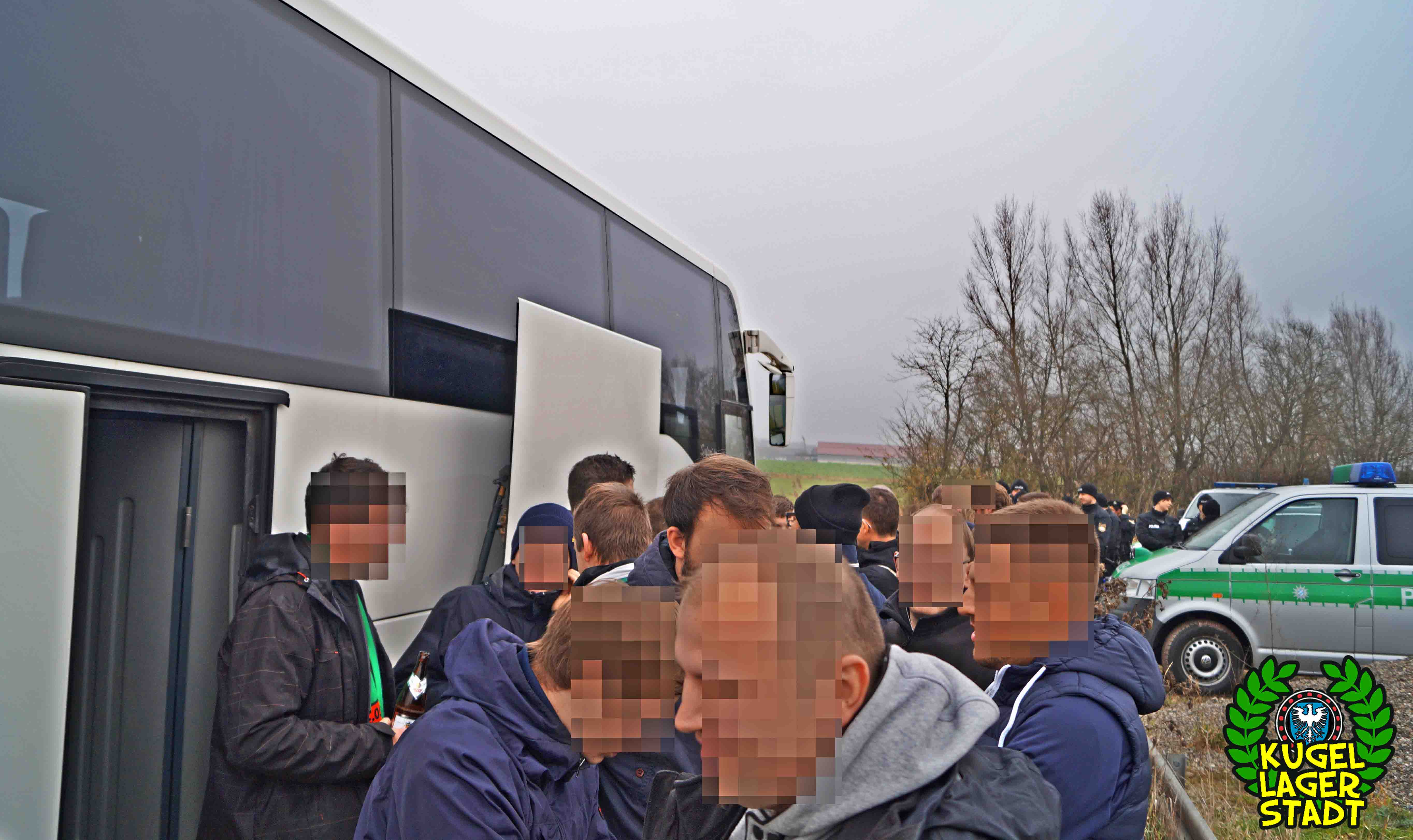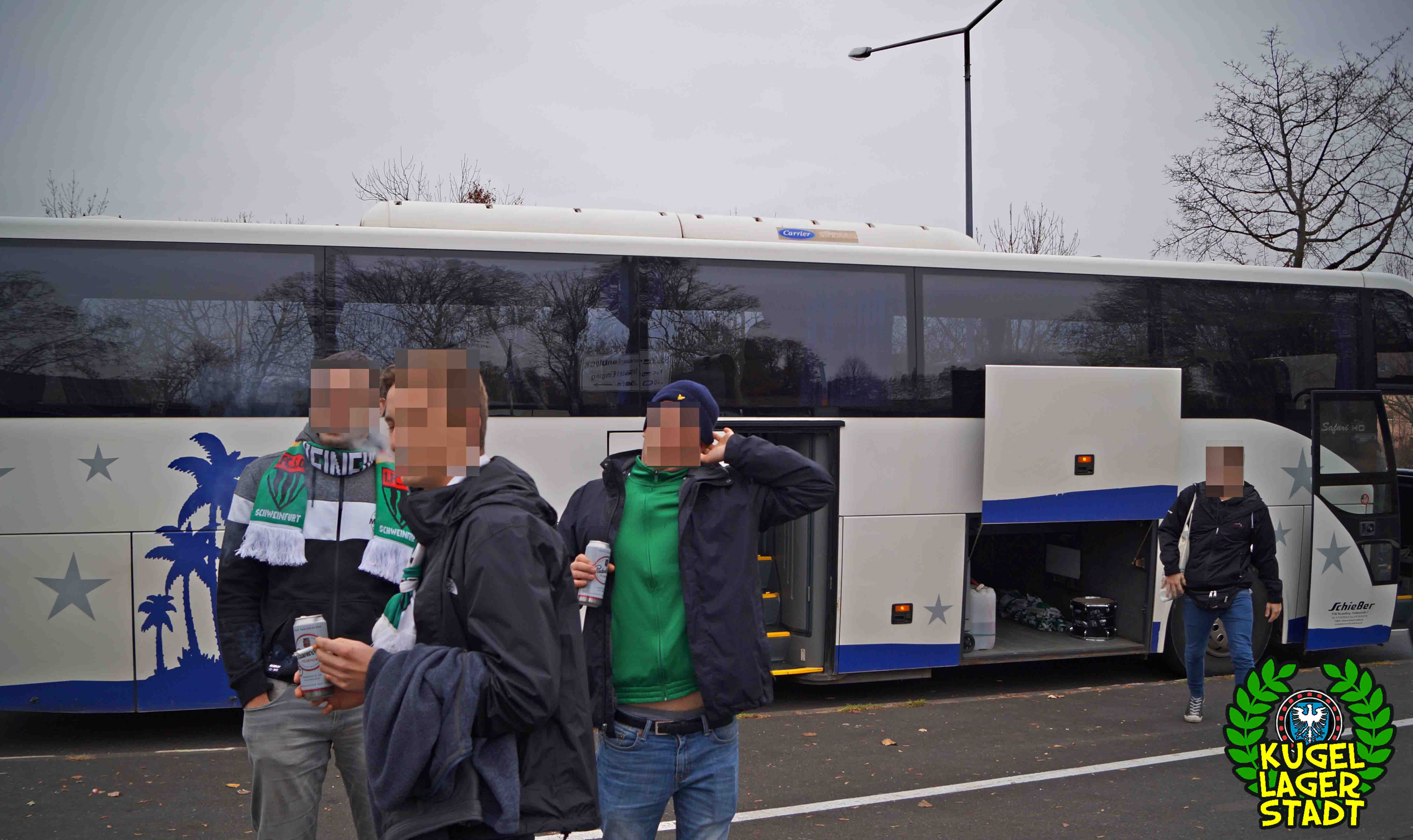 Gegen 11 Uhr fanden sich ca. 35 reisefreudige Mitfahrer am Willy-Sachs-Stadion ein, um gemeinsam die vermutlich letzte Auswärtsfahrt des Jahres anzutreten, da die meisten nicht so recht an die Durchführbarkeit des Nachholspiels in Hof am nächsten Wochenende glauben woll(t)en. So einigen Gesichtern war es durchaus anzusehen, dass sie einen Großteil der letzten nächtlichen Stunden vermutlich nicht zuhause im Bett verbracht hatten (O-Ton: „Im Kopf bin ich noch mehr im Eimer als äußerlich.“) Aber egal, bis zum Zielort in der Oberpfalz, knapp hinter der Grenze zu Mittelfranken, konnte man im Bus doch noch einige Mützen voll Pfeffi Schlaf nachholen. Dann kam der Bus. Und mit ihm ein Mann, der sich zumindest formell als Busfahrer ausgab. Spätestens als dieser jedoch die Landkarte ausbreitete um erst einmal nachzufragen, wo es denn heute überhaupt hingehen sollte, schrillten alle Alarmglocken. Während sich ein Teil der Besatzung um das kulinarische und leibliche Wohl der Mitfahrer kümmerte – welches in erster Linie aus gut gefüllten Rothbierkästen bestand – erklärte ein anderer Teil dem Herrn Busfahrer, dass Seligenporten eher nicht bei München liege und welche Autobahnen wohl zum Ziel führen würden. Als die letzten fehlenden Mitfahrer mit dem Taxi in letzter Sekunde zum Bus gebracht wurde, konnte die wilde Fahrt gen Kloster schließlich losgehen.