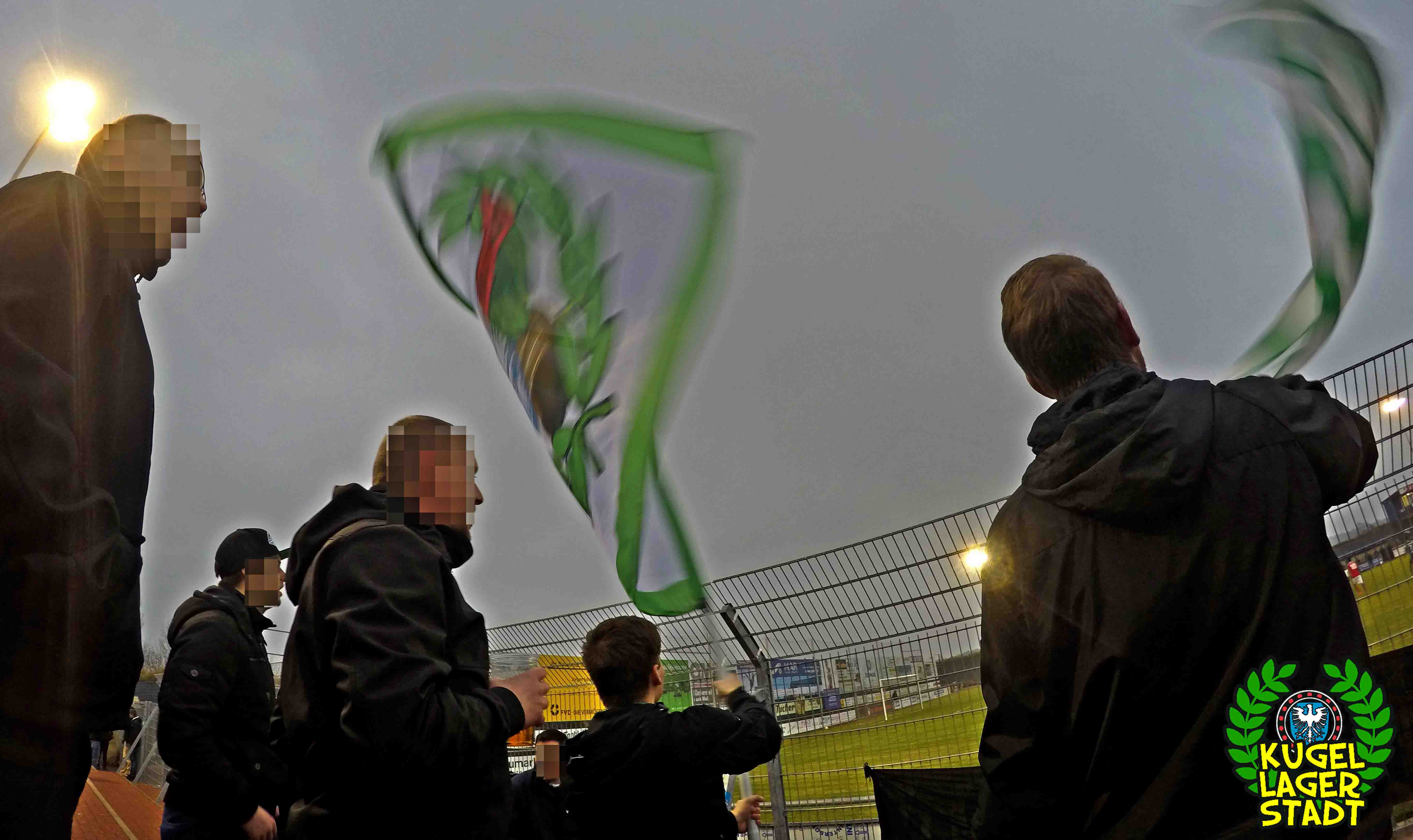 Nach dem Pause drehte neben unseren Schnüdeln auf dem Rasen auch der Gästeblock auf: Die mitgebrachten grün-weißen Schwenker wurden verteilt und umrahmten eine große Fahne nebst Doppelhalter. Die Trommel legte los: 1905! FC Schweinfurt 1905! Während unser Ex-Keeper Christopher Pfeiffer zahlreiche gute Möglichkeiten unserer 05er vereiteln konnte, sang sich der Gästeblock warm. Passend dazu stellte Adam Jabiri nach Vorlage Nikola Jelisic in der 65. Minute auf 3:2 aus Schnüdelsicht, was der Stimmung zusätzlich förderlich war. Zwanzig Minuten vor Schluss besorgte Marco Haller, wieder nach Vorarbeit Jelisic, den Treffer zum 4:2-Endstand. Bis auf eine unspektakuläre rote Karte gegen den SVS passierte nicht mehr allzu viel auf dem Spielfeld. Verdienter Auswärtssieg nach insgesamt sehr ordentlicher Leistung, passt schon so. In der Rückrunde stehen nun drei Siege aus drei Spielen, bei einem Torverhältnis von 12:2, was nur vom Branchenprimus aus Unterhaching getoppt wird.