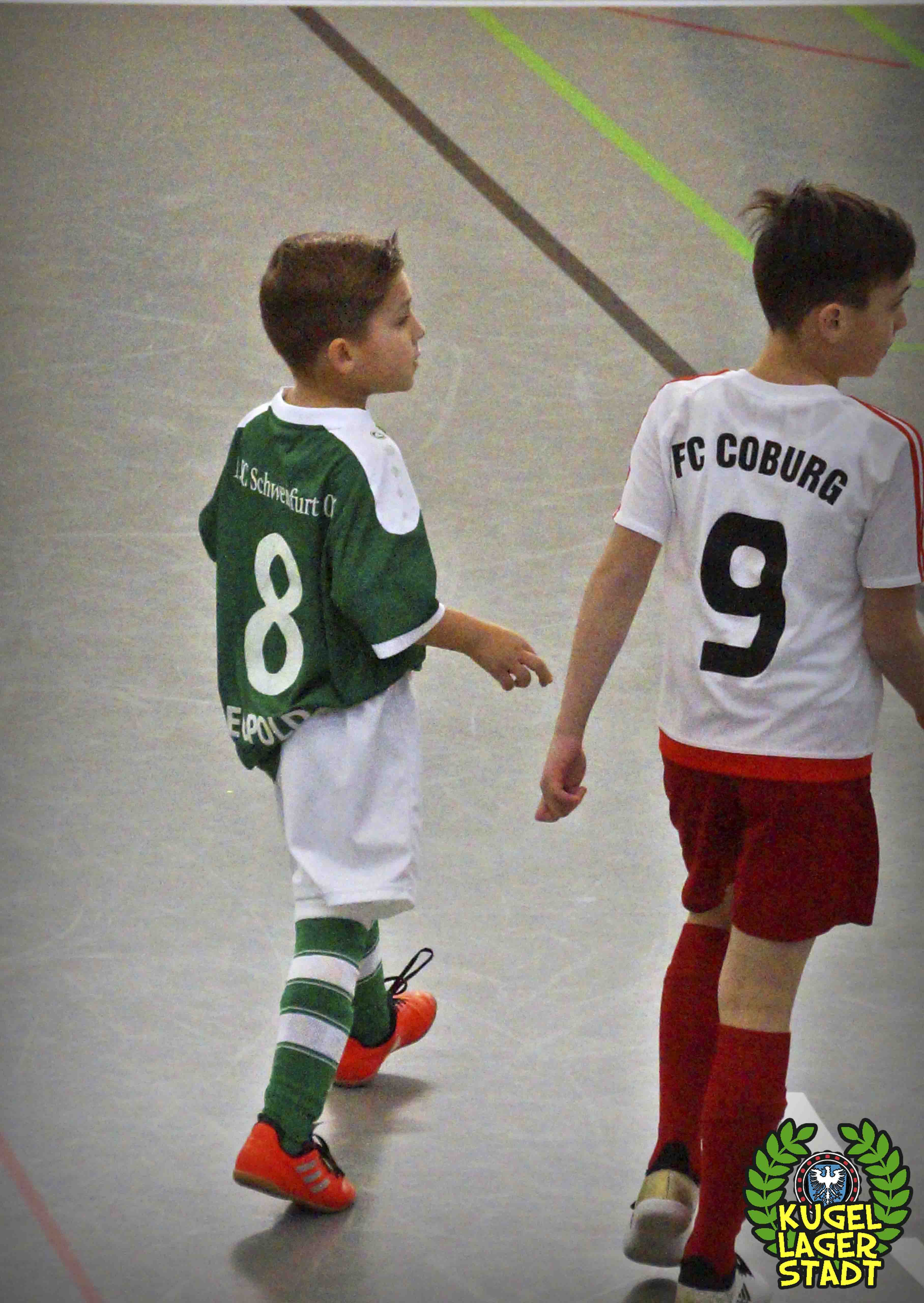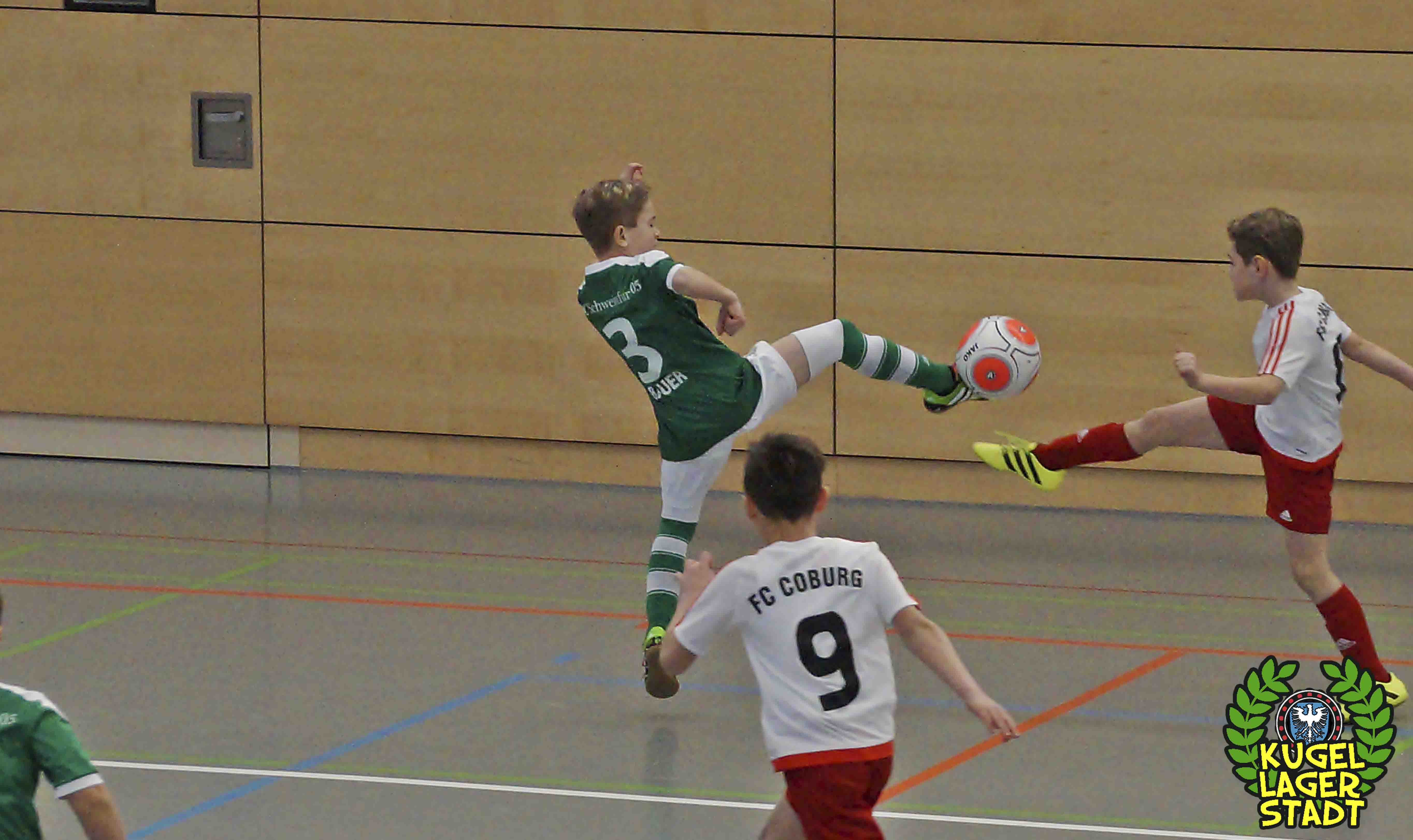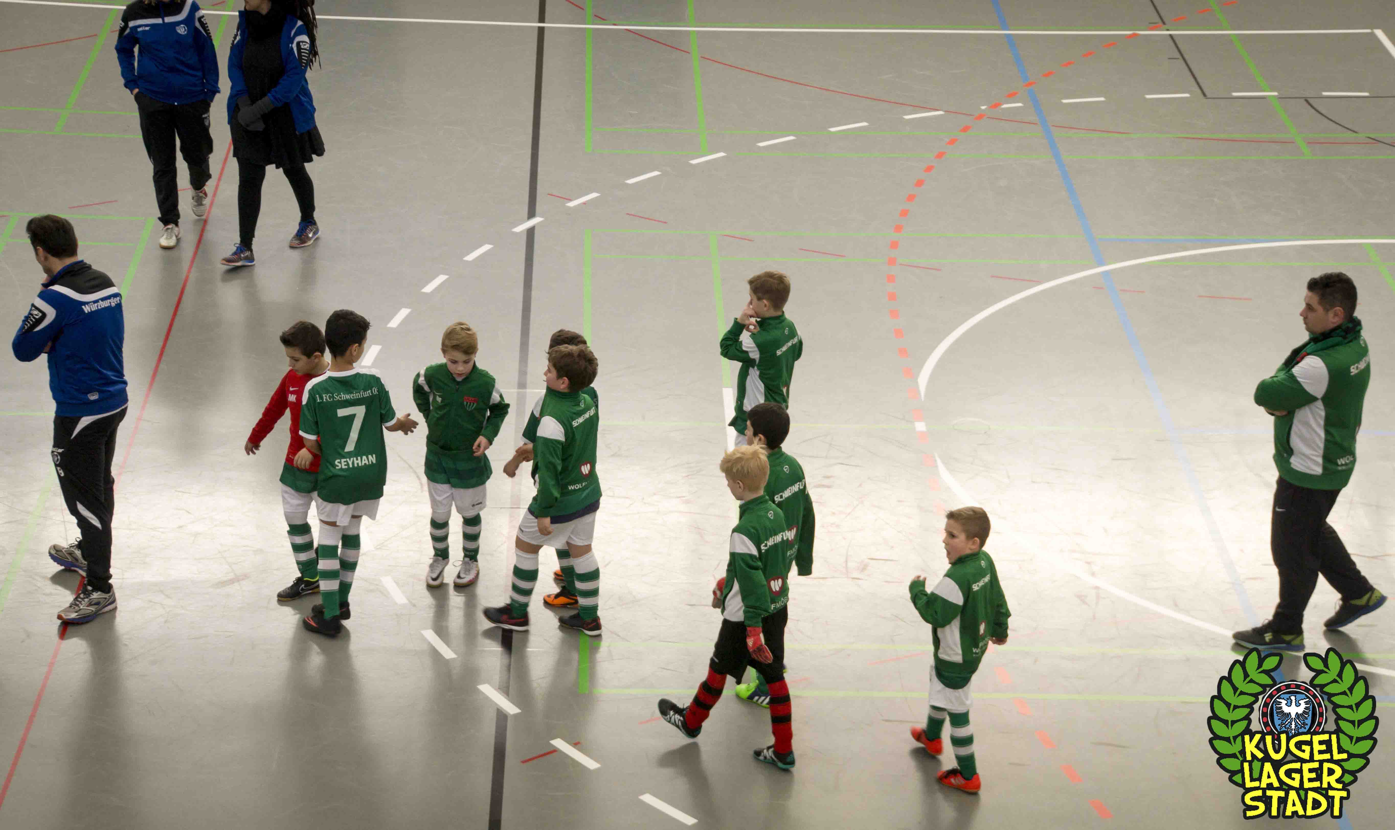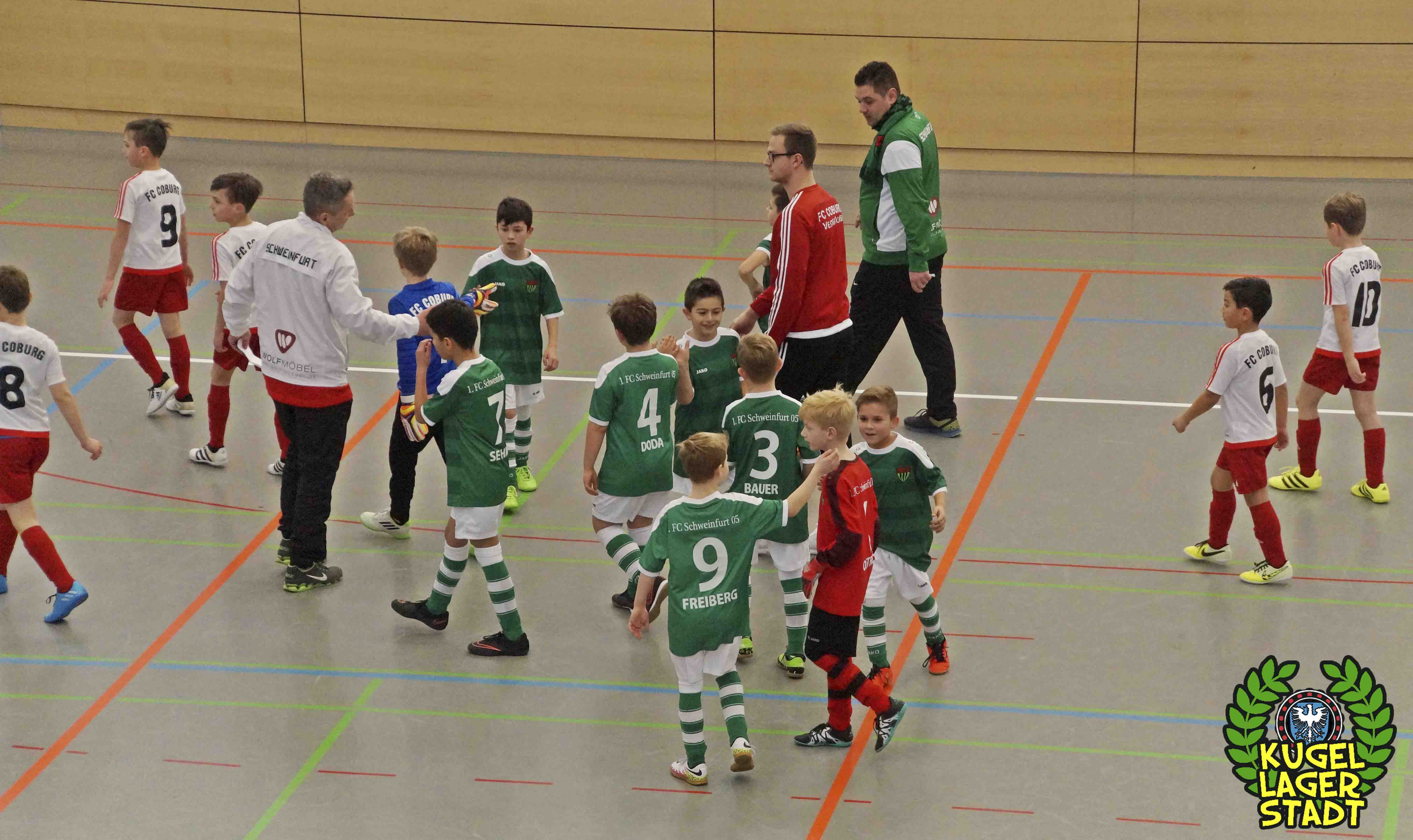 Direkt im Anschluss an den grandiosen Auftritt unserer U8-Jungs war der nächste Jahrgang unseres Schnüdelnachwuchses beim Hallen-Schnüdel-Cup an der Reihe. In der Vorrunde ging es zunächst gegen die Vestekicker des FC Coburg: Auf das 1:0 durch Ioannis Liappis netzte Fabio Leopold zum 2:0-Endstand ein. In der zweiten Partie ging es im „Niederwerrner-Straßen-Derby“ gegen die Nachbarn der DJK Schweinfurt: Während wieder Ioannis Liappis zum 1:0 traf, erhöhte dieses Mal Remo Bauer auf 2:0, was gleichzeitig den Endstand markierte. Im letzten Spiel der Vorrunde hieß der Gegner Würzburger FV: Durch sein drittes Tor im dritten Turnierspiel stellte Ioannis Liappis auf 1:0, was den ersten Platz in der Gruppe A sichern sollte. Nach der Maximalausbeute von 9 Punkten bei 5:0-Toren aus drei Spielen ging es schließlich ins Halbfinale, wo die Mittelfranken aus Fürth, die den zweiten Platz in der Gruppe B belegten, auf unsere Jungs warteten. Nachdem unser FC05 durch die Treffer von Lukas Doda und Ioannis Liappis mit 2:0 in Führung gingen, musste unser Nachwuchs den ersten Gegentreffer des Turniers durch die Quelle einstecken, ehe Robin Engelbrecht zum 3:1-Endstand erhöhen konnte. Im Finale nahm der Gegner aus Coburg dann erfolgreich Revanche für die Niederlage aus der Vorrunde, und so mussten sich unsere U9-Jungs am Ende, trotz 1:0-Führung durch Marlon Freiberg, knapp mit 1:2 geschlagen geben. Glückwunsch zu einem tollen zweiten Platz!