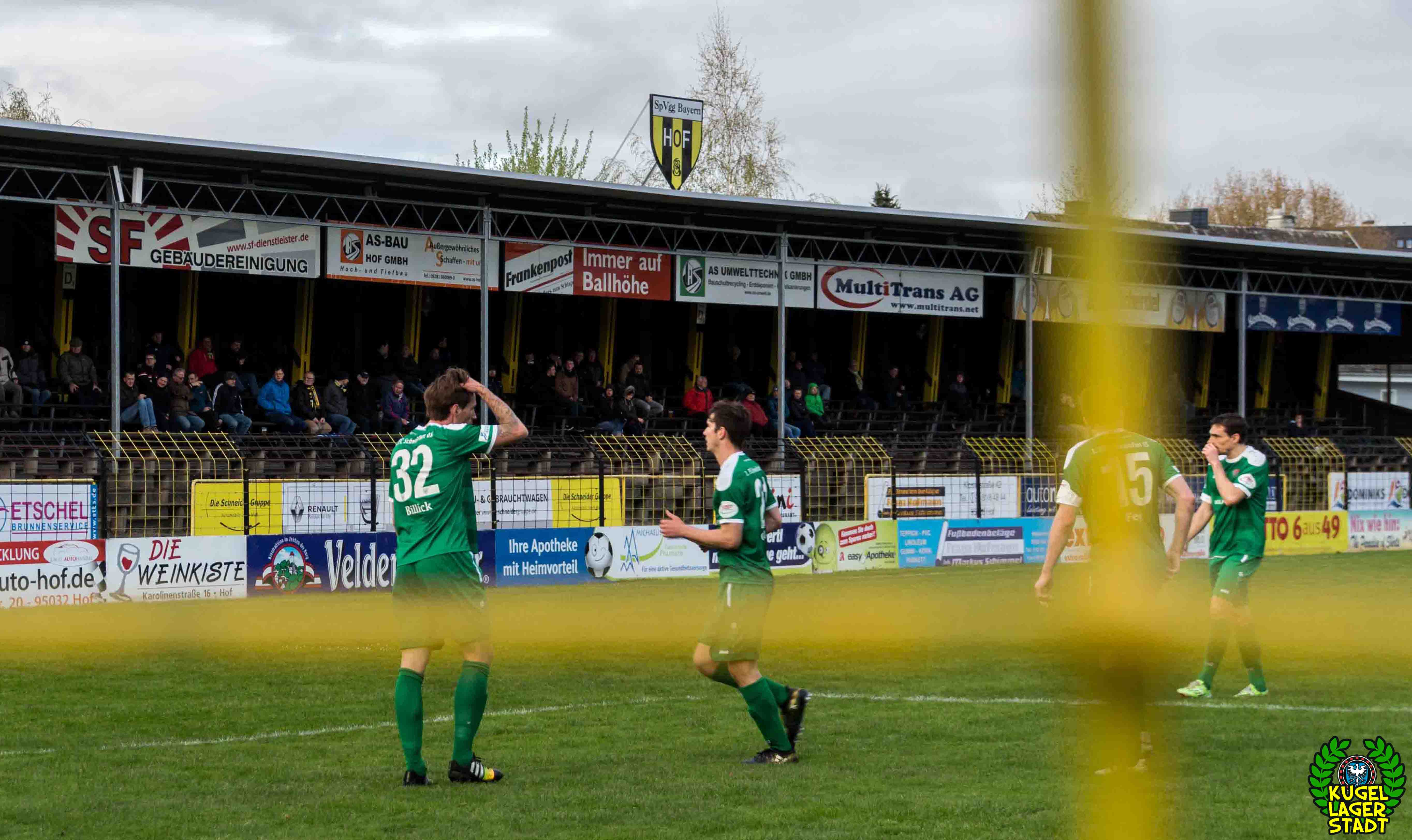 Wie man aus Hofer Kreisen erfahren durfte, spekuliert ganz Oberfranken – Bayreuth ausgenommen – derzeit auf einen eventuellen Rückzug des VfR Garching und einen Zwangsabstieg der Junglöwen aus München, falls sich deren erste Mannschaft nicht wider Erwarten in der Relegation durchmogeln wird. So könnten die Hofer tatsächlich noch auf einen der Relegationsplätze rutschen, was den Verbleib in der Regionalliga zumindest theoretisch wieder greifbar machen würde. Und seien wir – trotz aller vorhandener Rivalität – einmal ehrlich: Die Grüne Au hat auch eigentlich nichts in der Bayernliga zu suchen. Ein Stadion, das seinen Namen noch verdient und im Gegensatz zu den üblichen Sportplätzen und sogenannten „Arenen“ in der Regionalliga Bauern Charakter und eine eigene, lebendige Geschichte besitzt. Hier ist Fussball eben einfach noch Fussball und man kann sich durchaus vorstellen, was hier früher vor 10.000 bis 15.000 Zuschauern stimmungstechnisch los war [Anm. des Autors: Für die letzten Zeilen ist tatsächlich kein (!) Geld aus Oberfranken geflossen]. Ob man den Hofern den Klassenerhalt nun gönnen möchte oder nicht, sei an dieser Stelle jedem selbst überlassen, nur soviel: Ich fahre 1905-mal lieber hierher, als nach Illertissen, Buchbach, Rain, Seligenporten oder wie sie sonst so alle heißen, hier in der „Champions League der Amateure“. In diesem Sinne: Servus Grüne Au und bis nächste Saison. Dann kommen wir nämlich mit unserer zweiten Mannschaft 😉