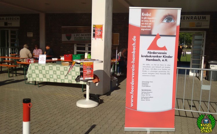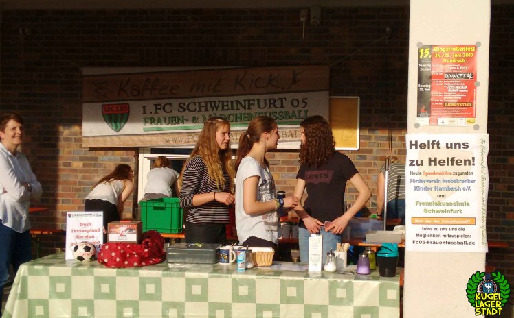 Als vor einiger Zeit feststand dass beim Bruder einer Spielerin der C-Juniorinnen ein Tumor im Fuß entdeckt wurde war der Schock bei allen groß, vor allem da er dem kompletten Team und den Eltern bekannt und durch seine zuvorkommende Art bei allen beliebt ist. Als dann vor ein paar Wochen die Nachricht kam dass der Fuß des leidenschaftlichen Fußballers nicht mehr zu retten ist und amputiert werden muss wuchs im Team der Wunsch Hilfe in irgendeiner Form leisten zu können. Hier kam dem Mannschaftbetreuer der Mädels der bereits feststehende Kaffeebardienst der Fussballerinnen beim Regionalligaspiel der Schnüdel gegen den FCB2 ganz recht. Wo sonst eine Hand voll Spielerinnen Kaffee und Kuchen unter die Leute bringen wurden diesmal ihre Eltern zum Dienst eingeteilt, die Mädchen wurden ja zum Spendensammlen gebraucht.