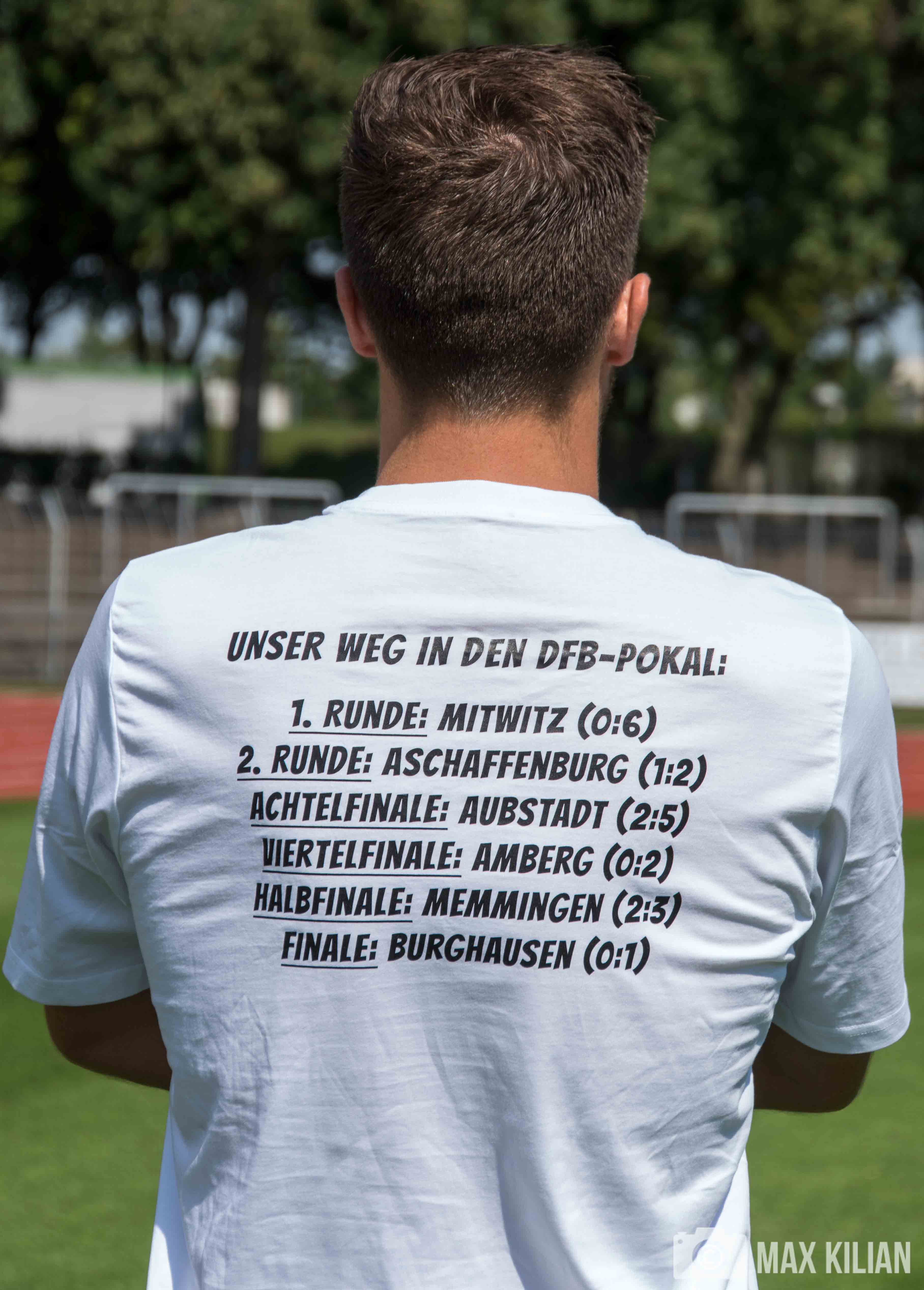 Das große Spiel am Sonntag wirft unlängst seine Schatten voraus. Und das auch im Fanshop unserer Schnüdel: Neben dem Pokaltrikot wird auch ein spezielles Pokalshirt angeboten, welches auf der Rückseite unseren Weg in den DFB-Pokal zeigt, von Mitwitz bis nach Burghausen. Gerne schicken wir davon natürlich auch ein Exemplar an unsere Freunde nach Memmingen 😉