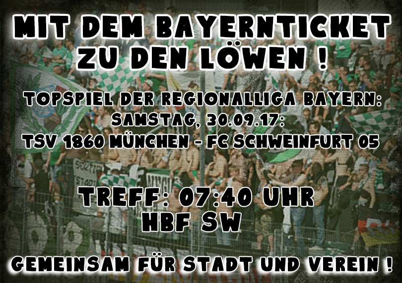 An lautstarker Unterstützung sollte es unseren Grün-Weißen morgen in München nicht mangeln, so reisen geschätzt 600 Schnüdel in Richtung Grünwalder Straße, und im Anschluß womöglich auch noch auf die allseits beliebte Wiesn. Fan-Informationen sind hier verfügbar!