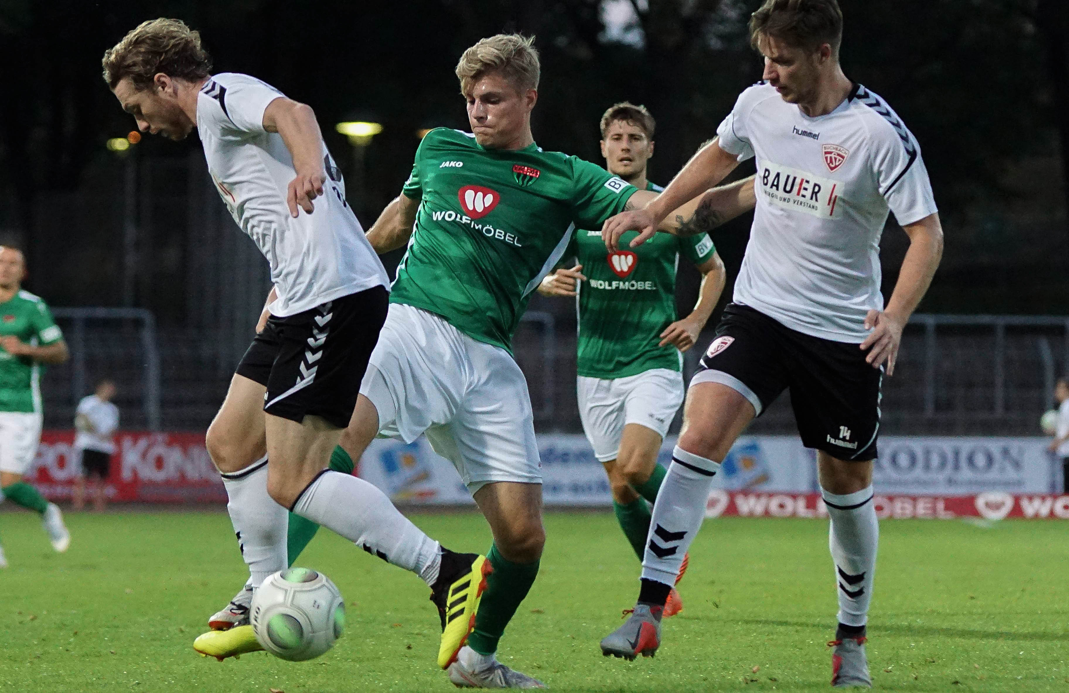 TSV Buchbach: Maus – Drum (69. Bauer), Hain (C) (46. Breu), Leberfinger, Grübl – Moser, Rosenzweig (84. Denk), Brucia, Petrovic – Ammari, Drofa
