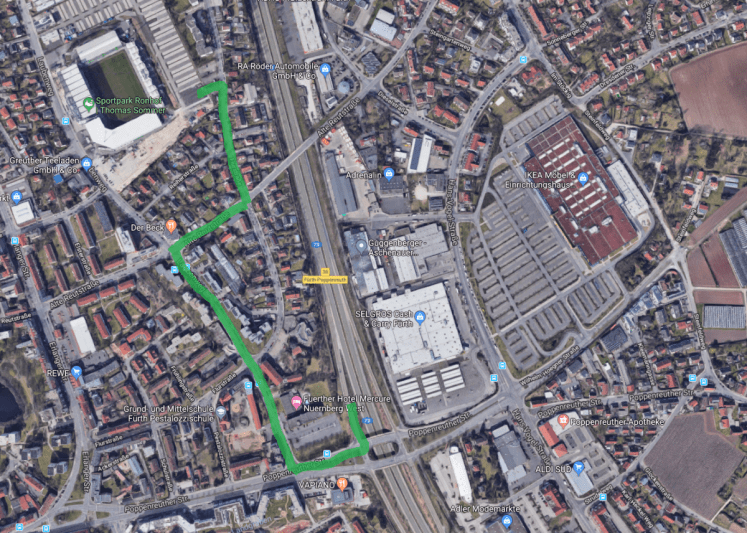 Der Gästeblock im Sportpark Ronhof ist für alle Schnüdel-Fans geöffnet. Auch der neue Parkplatz ist fertiggestellt, diesen erreicht man am besten folgendermaßen: Ab der Autobahnausfahrt Poppenreuth der Beschilderung für Gästebusse folgend über den Laubenweg. An der Ecke der Bäckerei „der Beck“ rechts auf die alte Reuthstraße und dann wieder links auf die Flurstraße (siehe Abbildung anbei). Der Gästeblock öffnet am Samstag um 13 Uhr.